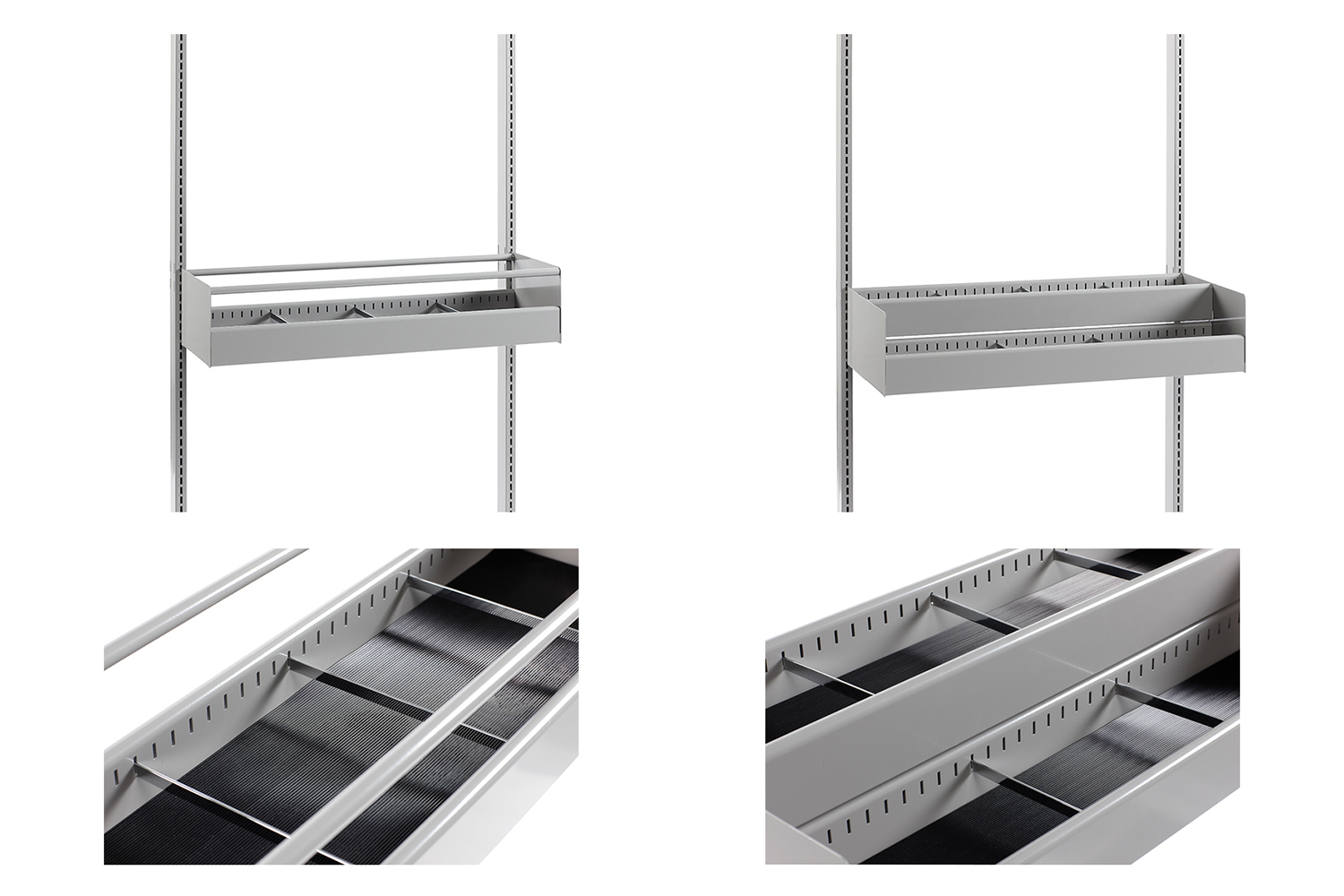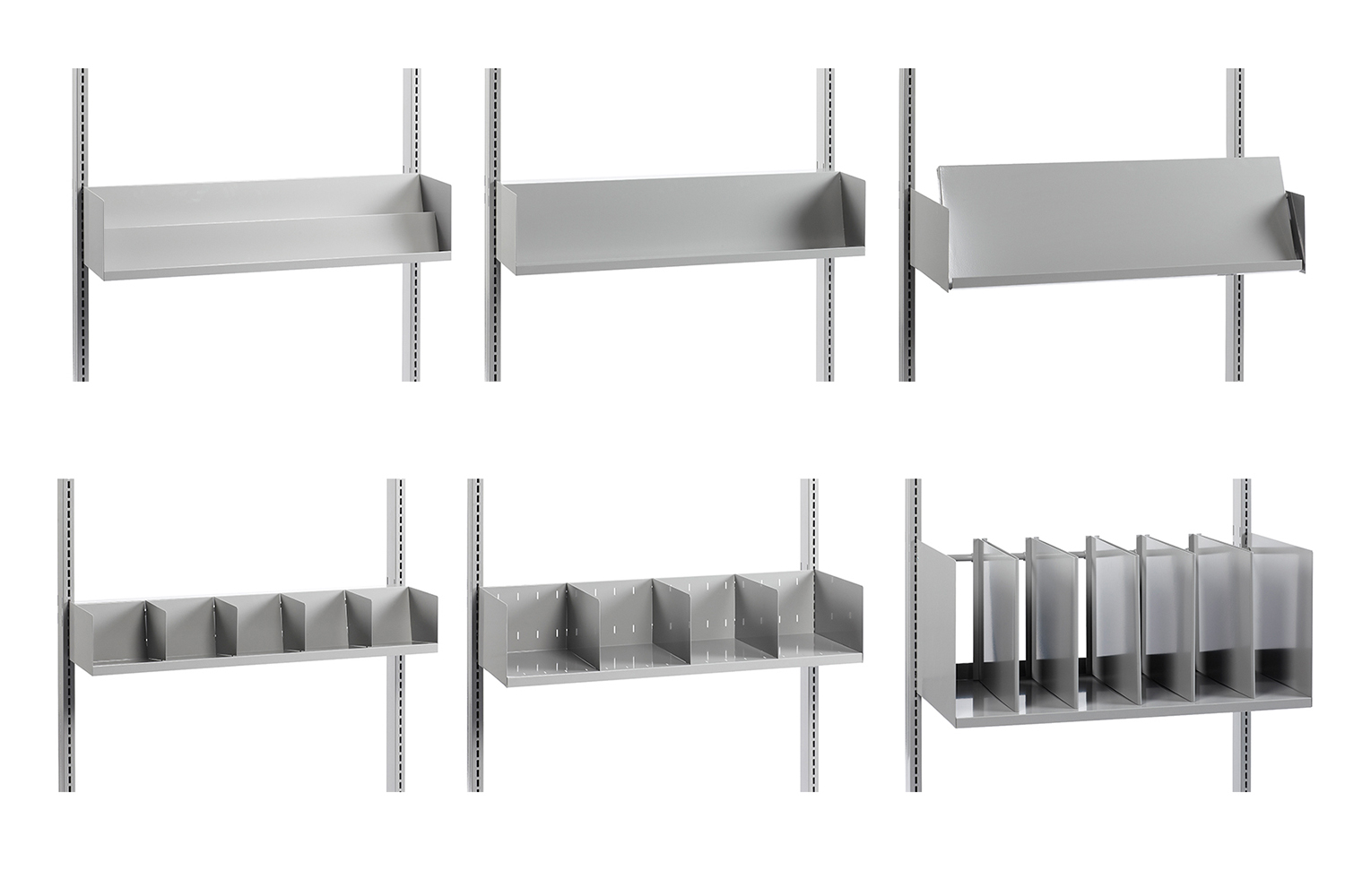 This can be done with different types of shelves or various functions elements and thereby create unique shelving systems.
