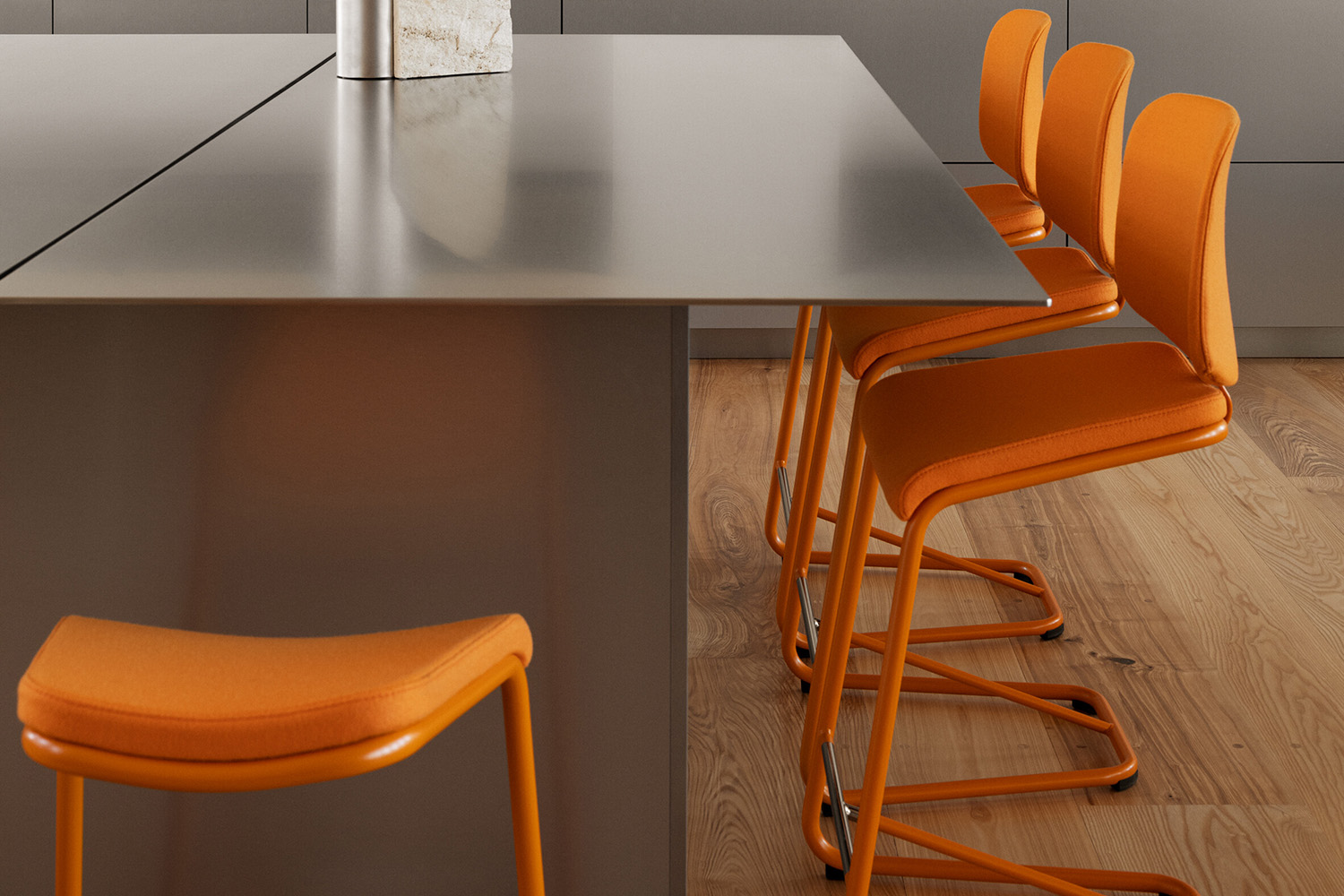 The Add chair and barstool are available with or without castors, providing flexibility and optimal comfort for extended use. The barstool and compact side table in the series are ideal for dynamic environments where furniture mobility is key. The Add storage unit complements and enhances library interiors.