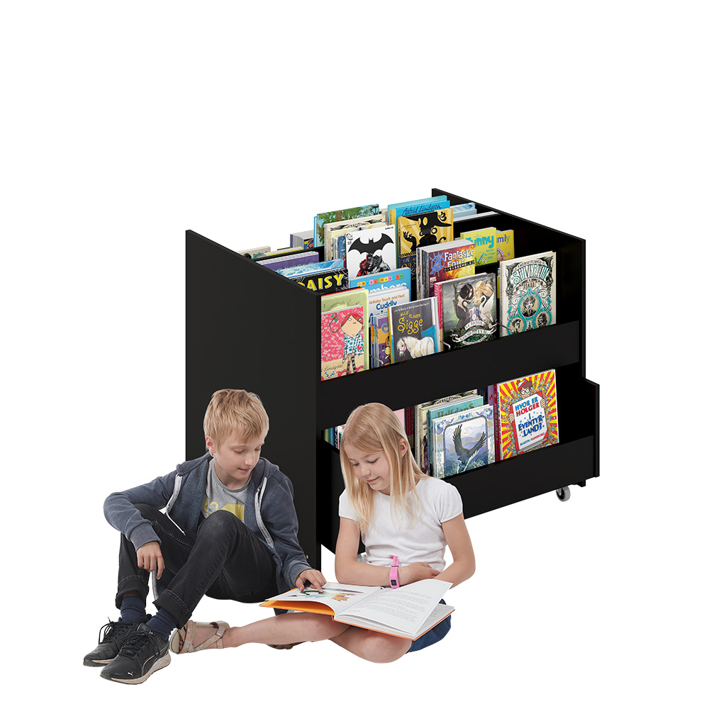 Grooved rubber mats in the top compartments ensure that even a small number of books will stay upright.