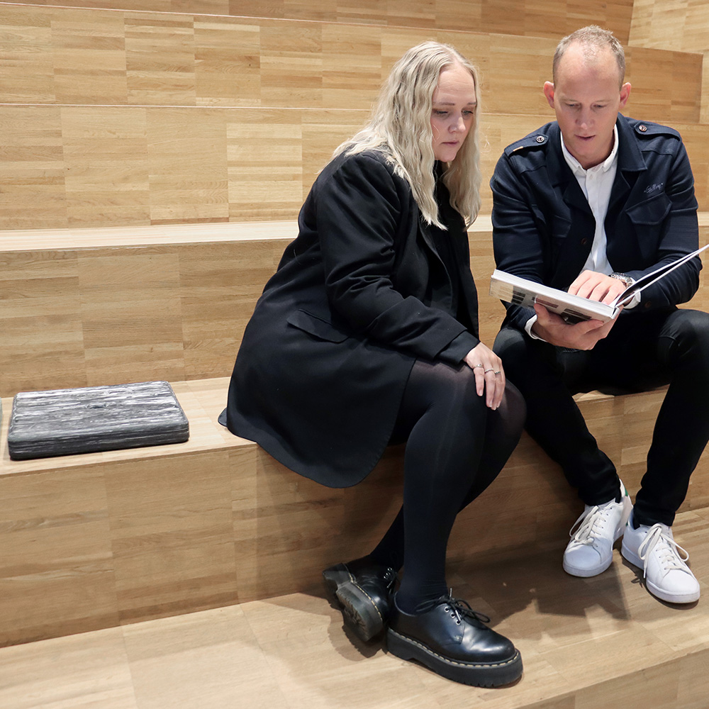 The cushion is available in various marbled colours, inspired by nature and are ideal for use on the floor, benches, staircases etc.