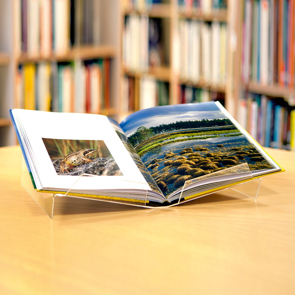 A simple ingenious design for presentation of open books.