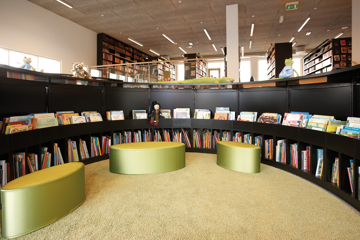This fresh and multifunctional pouf from Softline is a nice supplement to the more traditional library furniture.