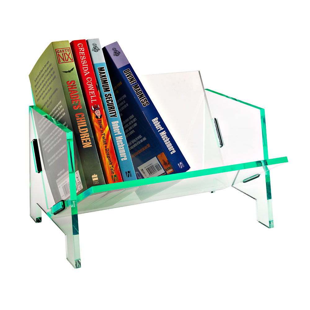 A handy cradle to store, move and display books and other media.