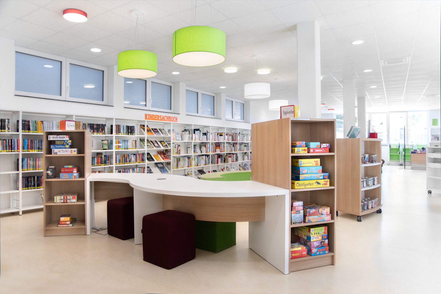 Inform is a series of round shelvings, search stations, counters and tables.