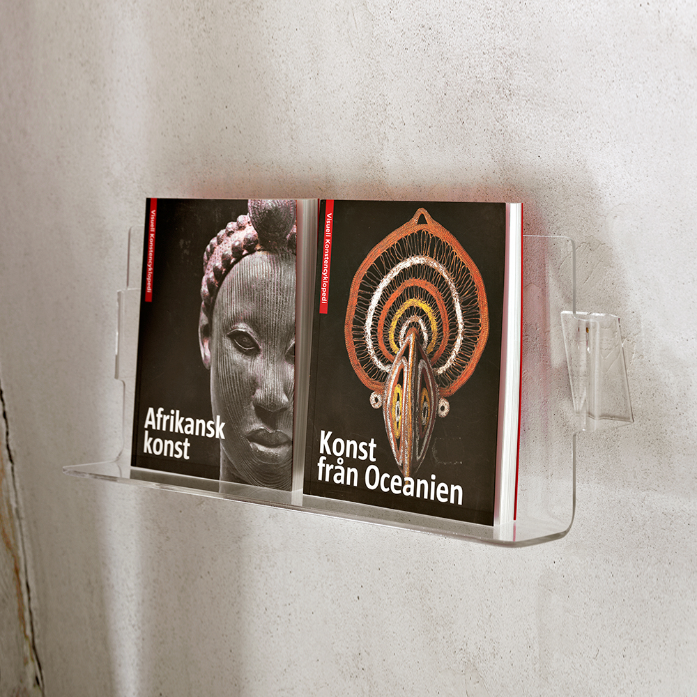Smart, wall-hung acrylic display holder in sturdy acrylic with excellent detail finish.
