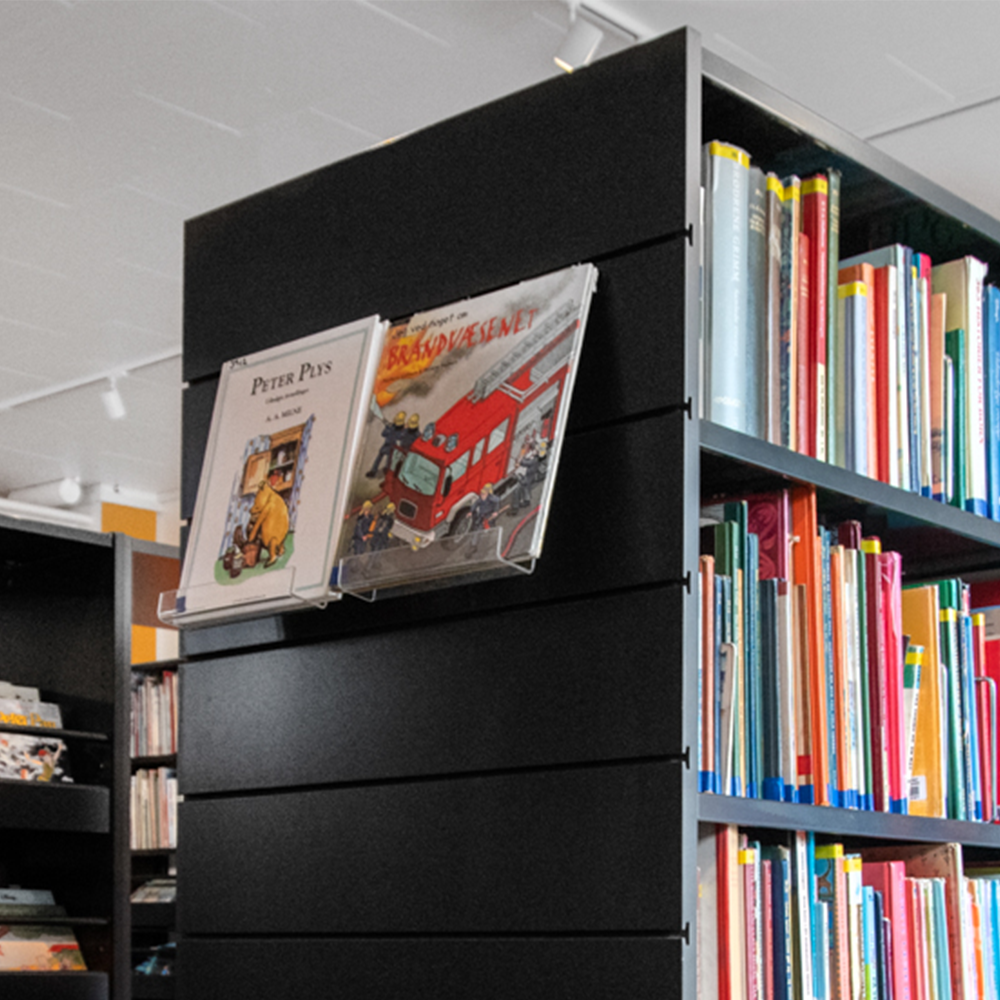 The displays are easily moved around to create flexible display solutions for books, AV-media such as CD/DVDs, magazines, brochures, etc.