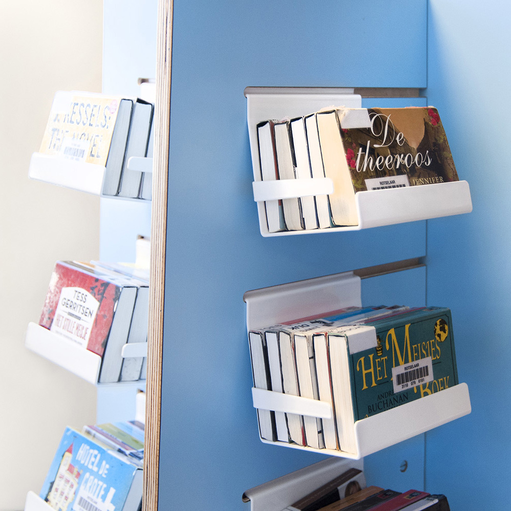 The displays are easily moved around to create flexible display solutions for books, AV-media such as CD/DVDs, magazines, brochures, etc.