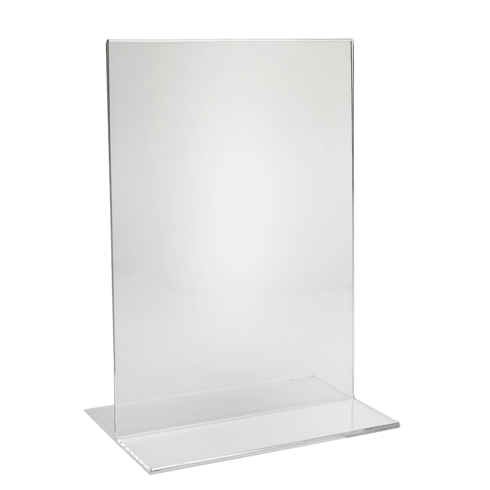 Practical double-sided stands for signs and information for tables, countertops, shelves, window displays, etc..