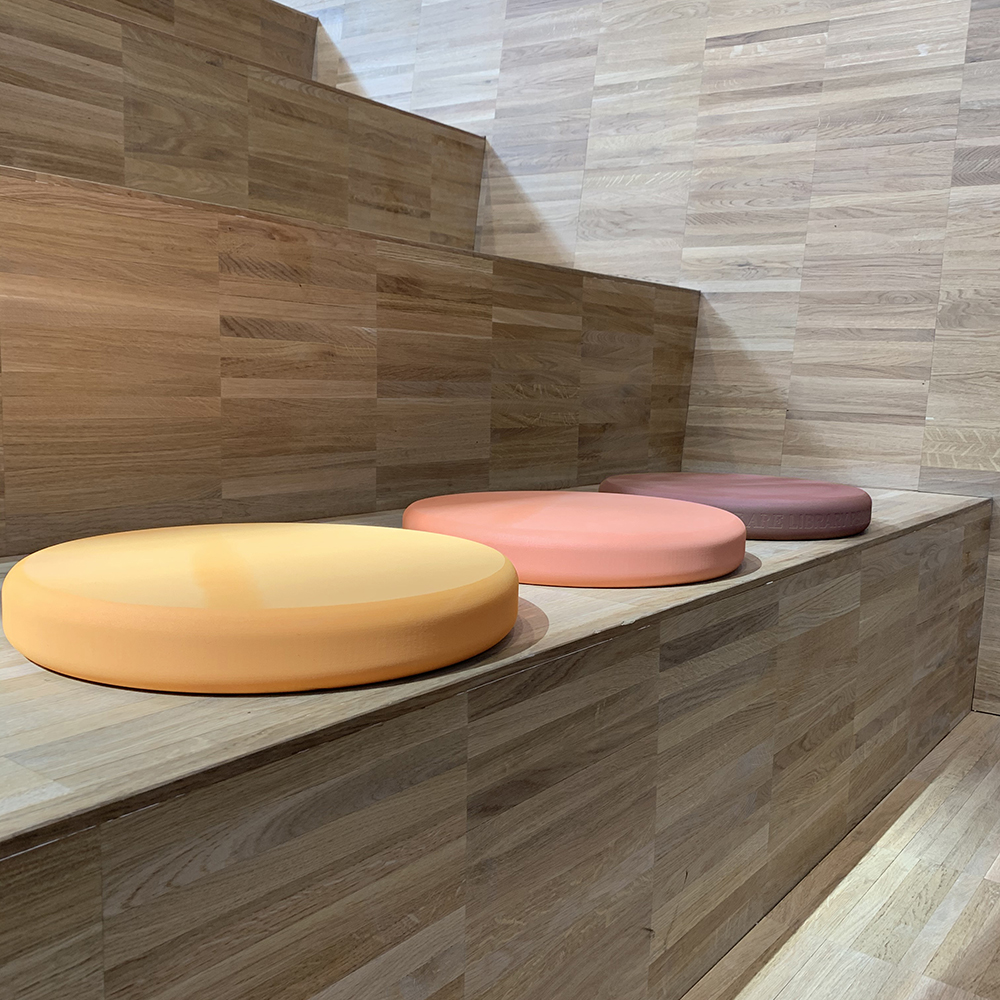 The cushion is available in 2 designs and various colours and are ideal for use on the floor, benches, staircases etc.