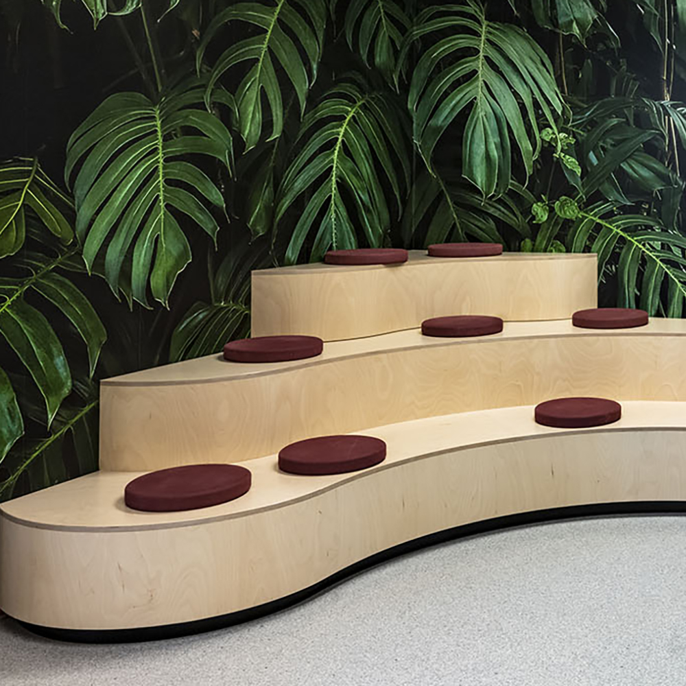 The cushion is available in 2 designs and various colours and are ideal for use on the floor, benches, staircases etc.