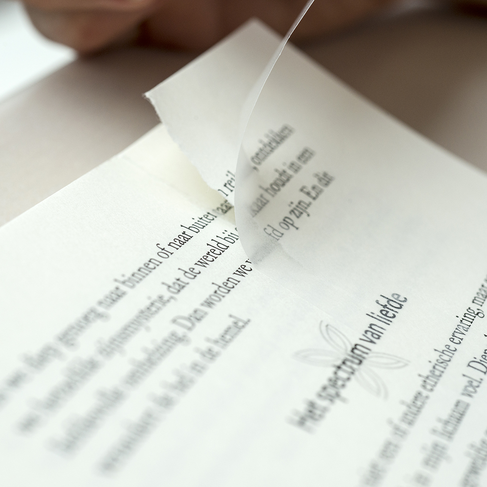 Self-adhesive, transparent special paper tape which is virtually invisible. And ideal combination of stability and strength with softness and completely transparency writeable surface. You won't see or feel the tape once it's applied.