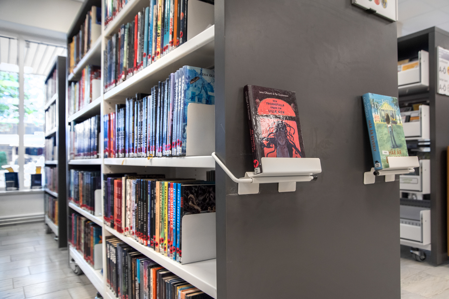 Works with most shelving systems with sturdy end panels.