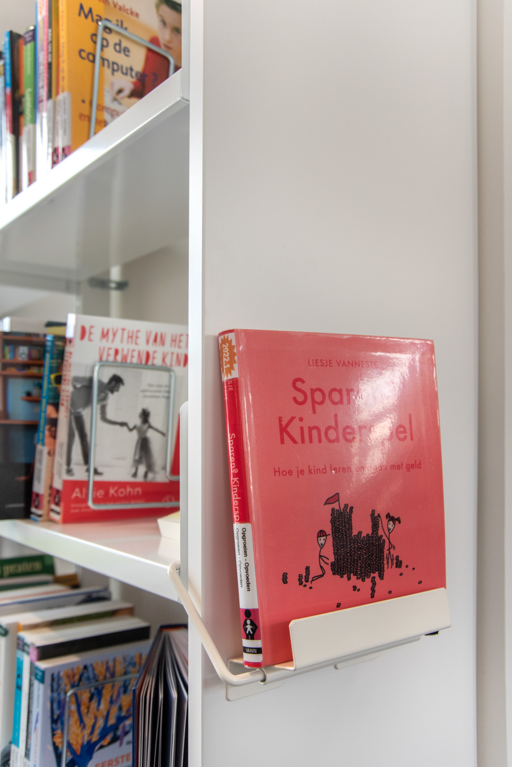 Versatile holder for front-facing display of books.