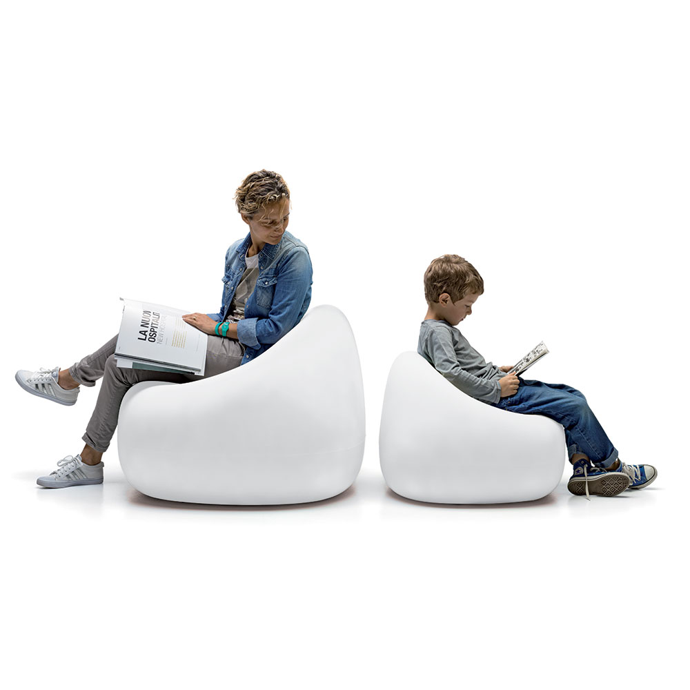 Shaped like a soft, already ”used” bean bag, the Gumball armchair offers the perfect place together with friends or a good book.