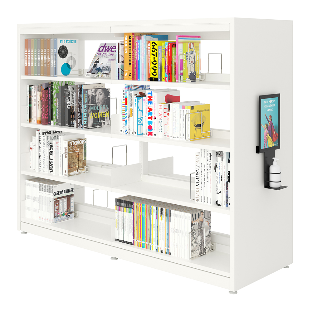 Screws are included for mounting on wooden end panels (min. 15 mm thickness) in the entire library to secure good hygiene. Can also be mounted on all other surfaces.