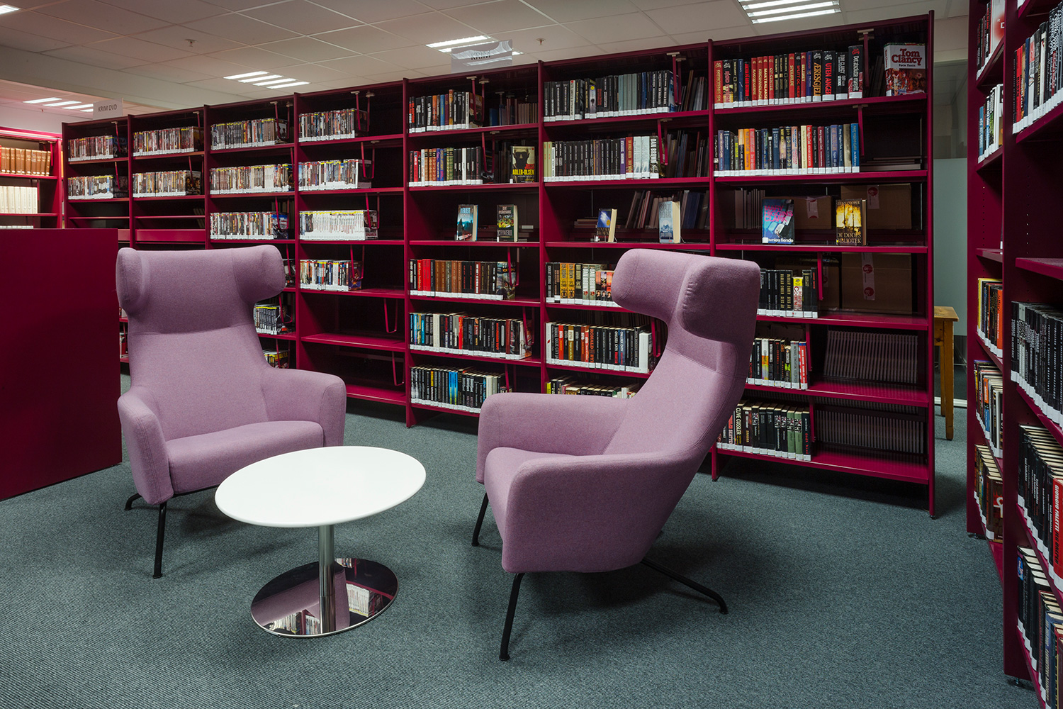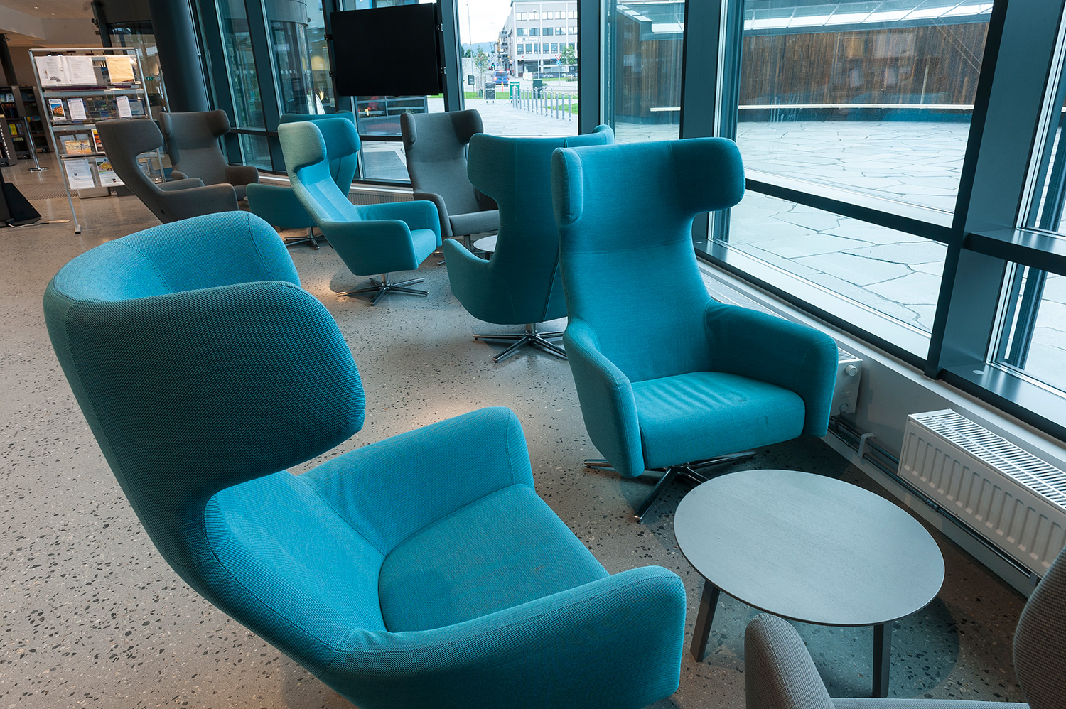 Havana chair from Softline is a timeless classic that adds warmth and a cozy feeling to the library interior.