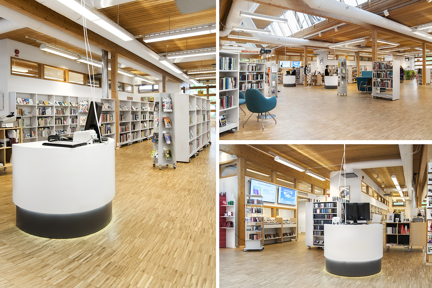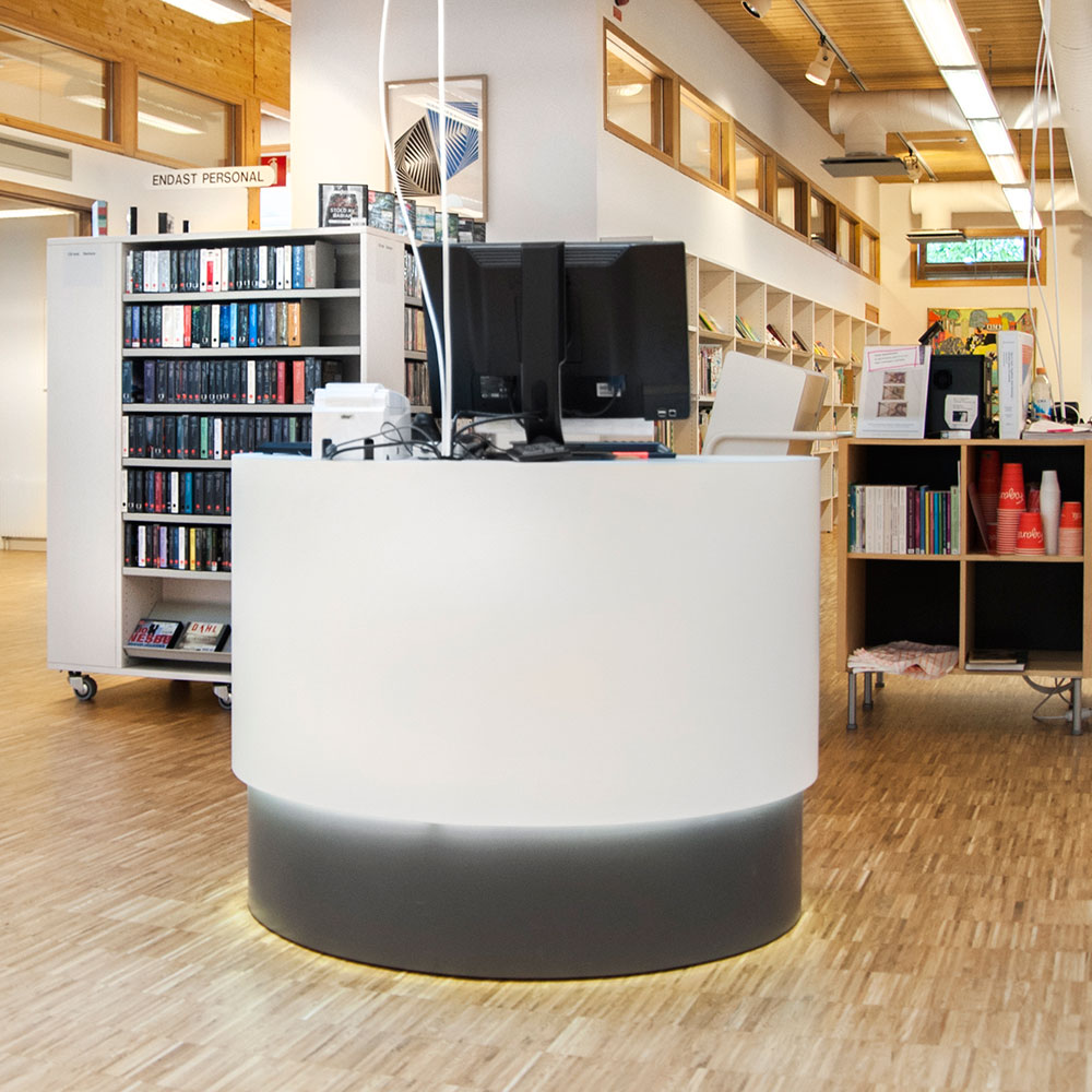 Info Pod is delivered assembled with adjustable feet and wheels (limited mobility). Retract the feet so that the wheels come into contact with the floor.
