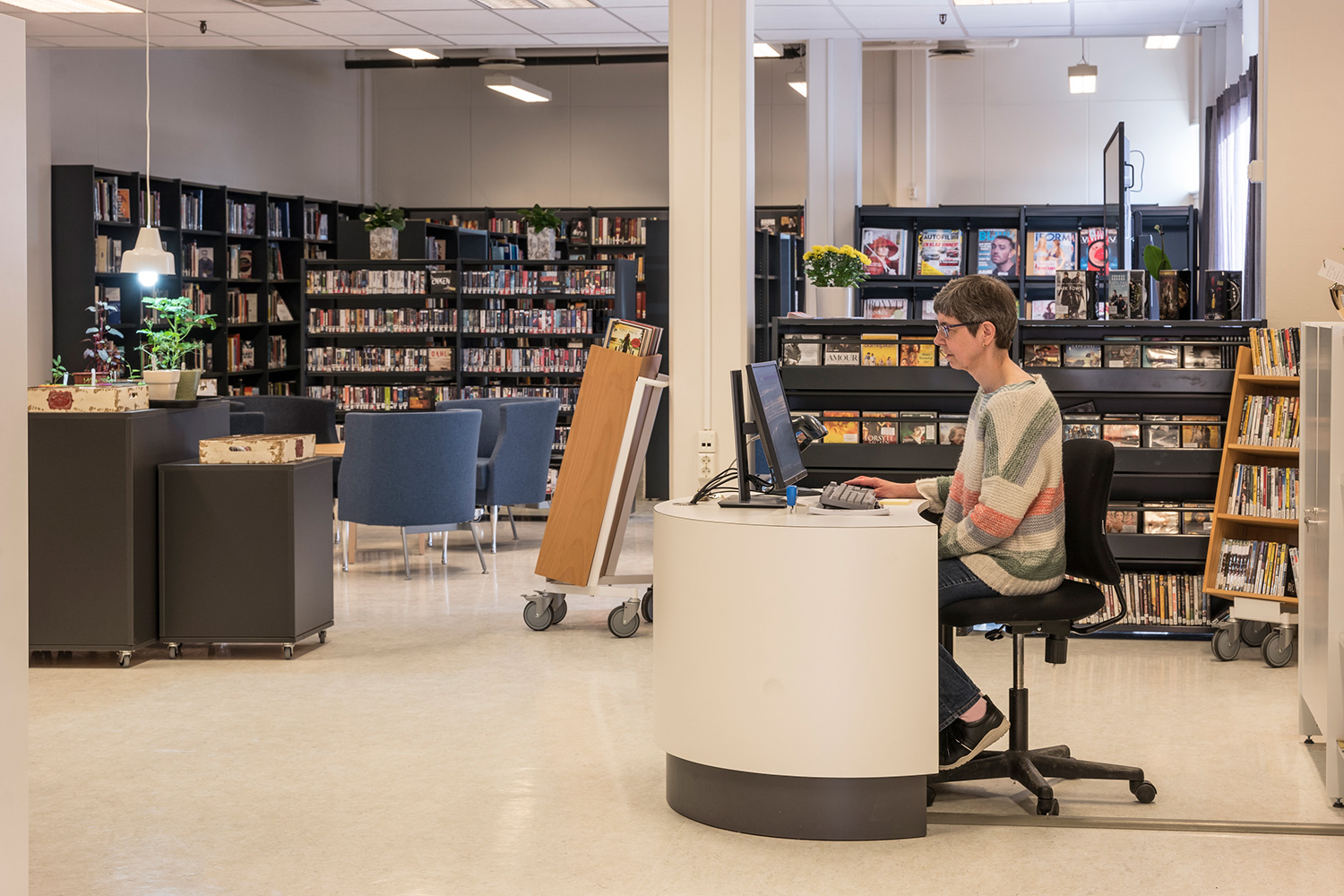Stylish, compact counter in a clean and functional design. Ideal for large libraries as information desks or search stations and/or for school libraries as reception desks.
