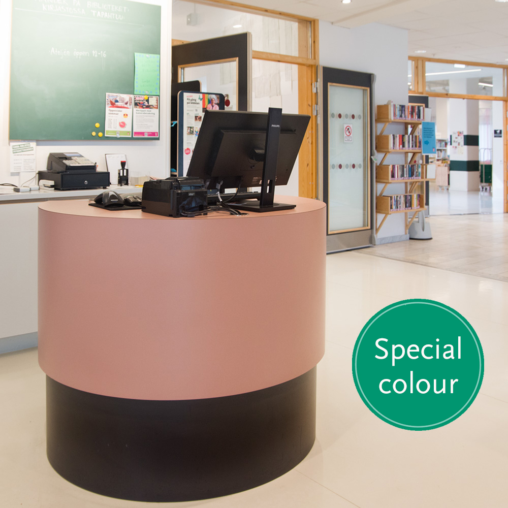 Stylish, compact counter in a clean and functional design. Ideal for large libraries as information desks or search stations and/or for school libraries as reception desks.