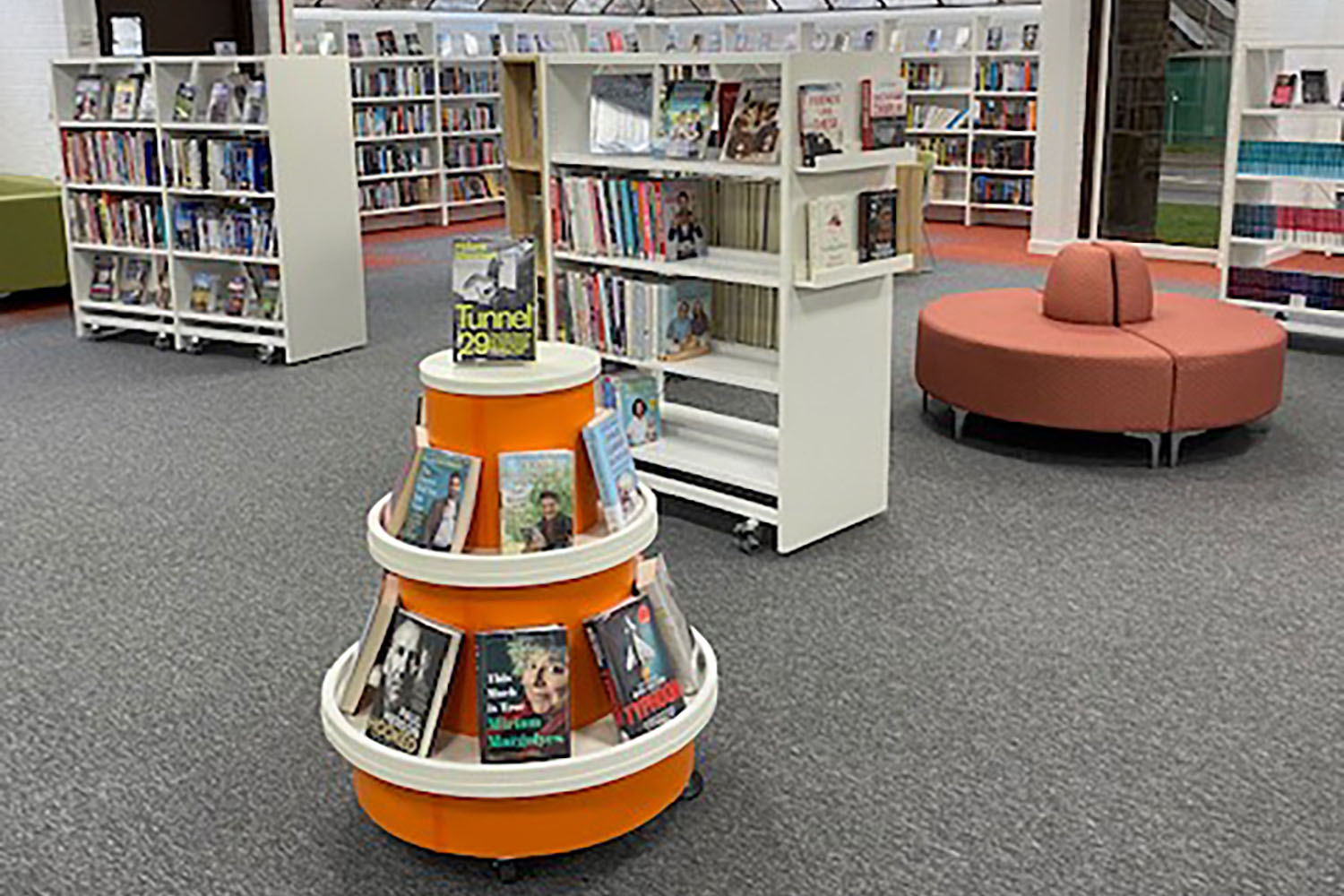 - Colourful and modern display units also placed throughout the library and supplied with castors to allow easy removal or relocation.