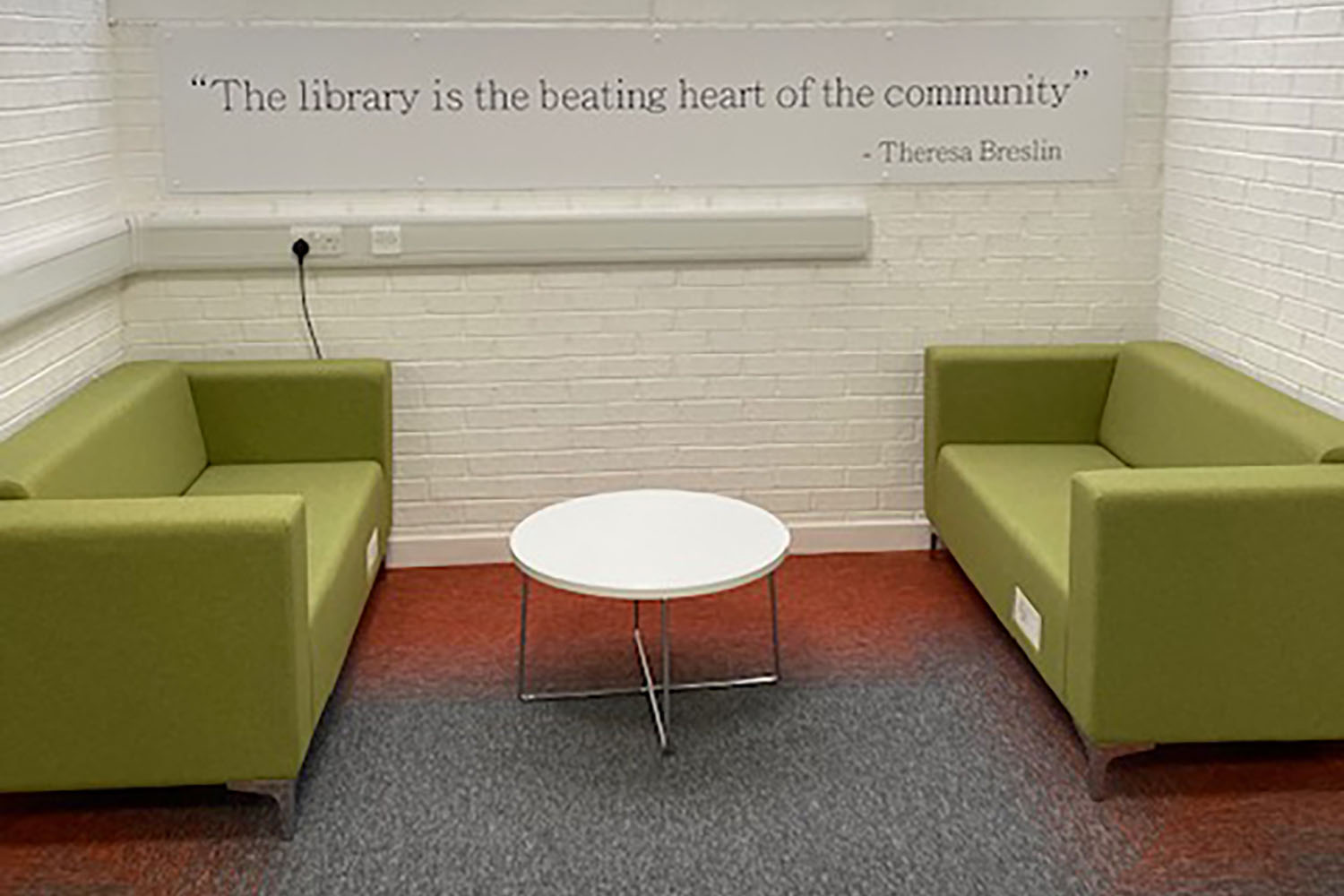 - Exclusive wall graphics installed throughout the library, including remarkable book quotes and colourful art, transforming what was previously impersonal bricks and mortar into an innovative design element.