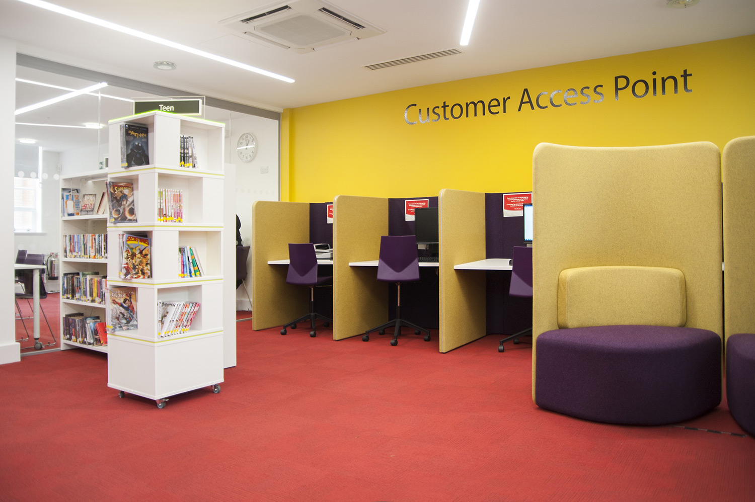 Great Sankey Neighbourhood Hub is an integrated facility. The building includes health, leisure and library facilities for the community. Thedesignconcept worked closely with everyone involved to produce designs that were kept close to the Architect’s original vision for the space. Due to the hub being one of the first public wellbeing buildings seeking Dementia Friendly accreditation, we researched the best practice for designing dementia friendly environments with the aim of getting accreditation from the Stirling Dementia Services Development Centre.