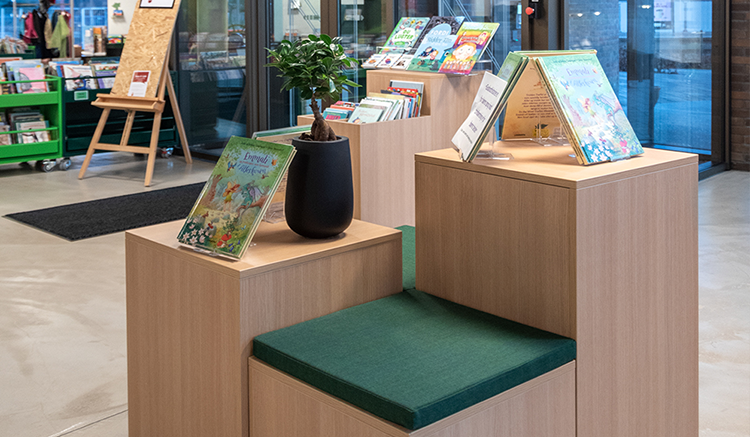 Make sure the exhibition areas appeal to different age groups and use them to highlight themes, projects, non-fiction, games, and much more – inspire them to try something new!