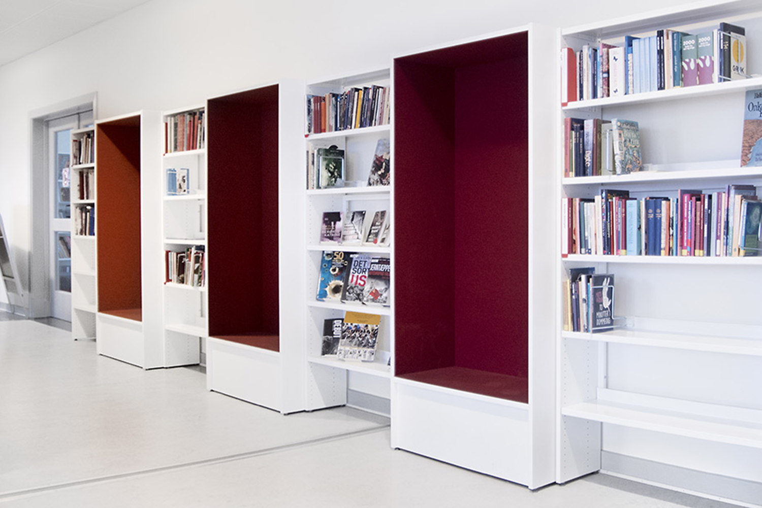 Reading caves come in many editions and can be built in shelving systems or accessed as an individual piece of library furniture. The caves are often used by one or few pupils at a time and are suitable for reading, study, listening, or creative work.