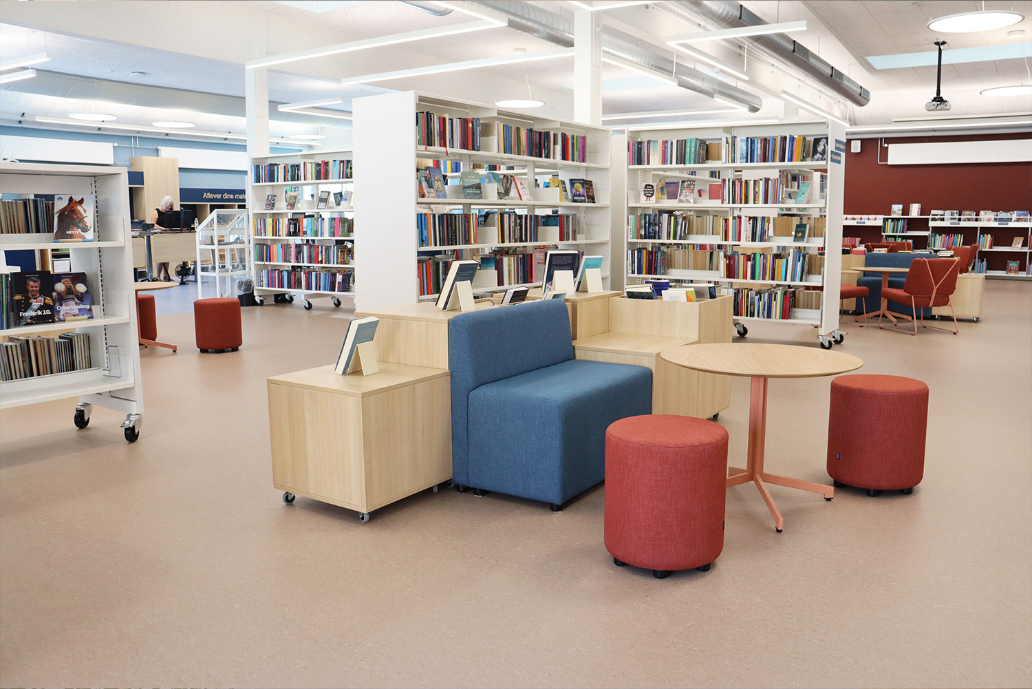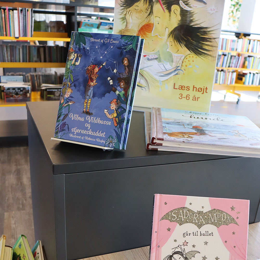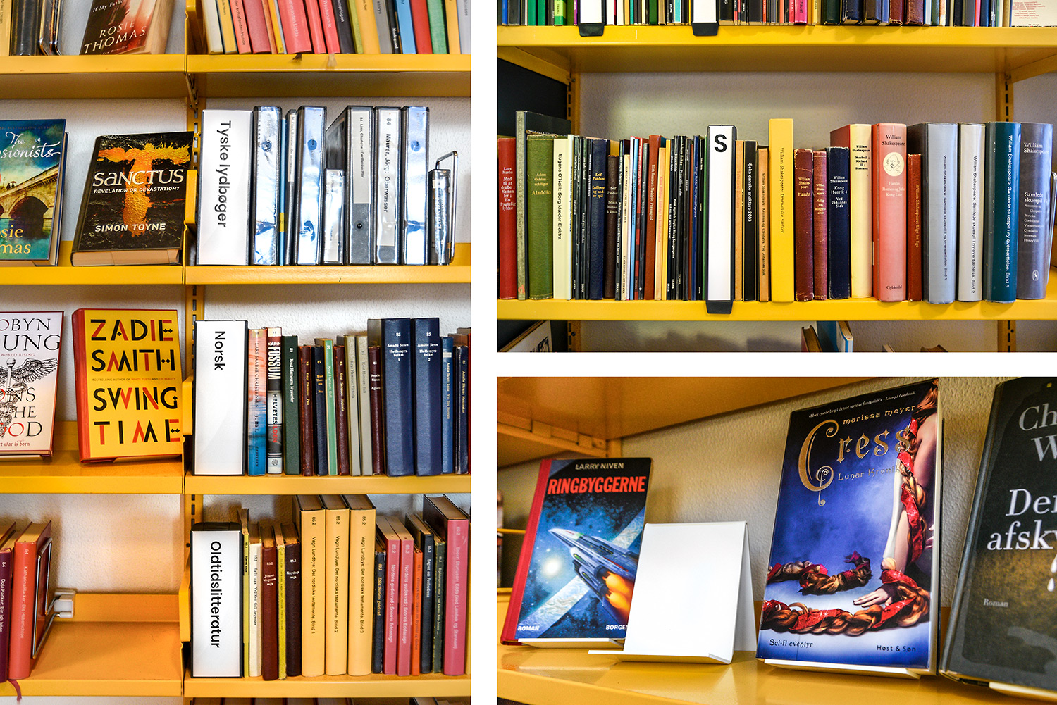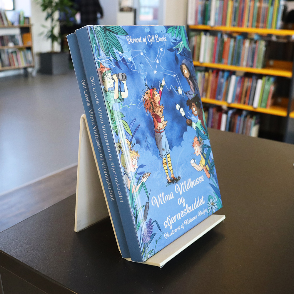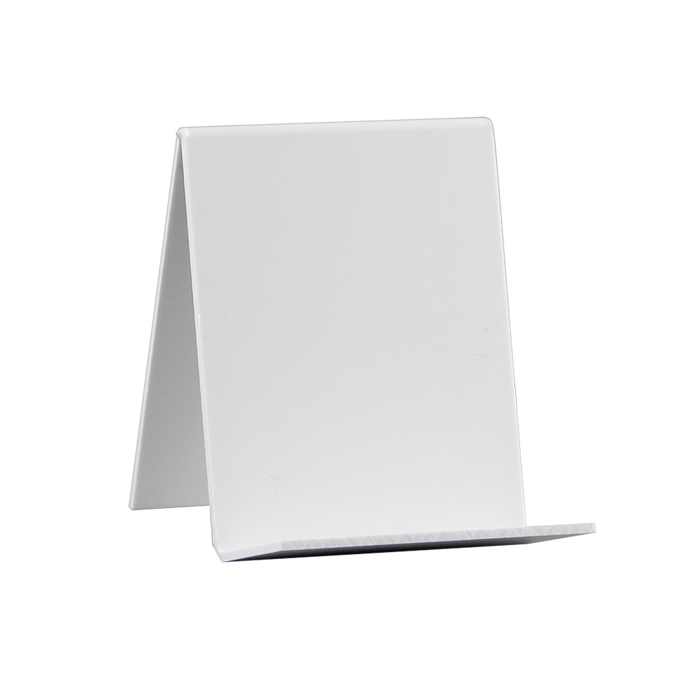 All-round, dyed, stackable acrylic stand for presentation of books and AV-media.