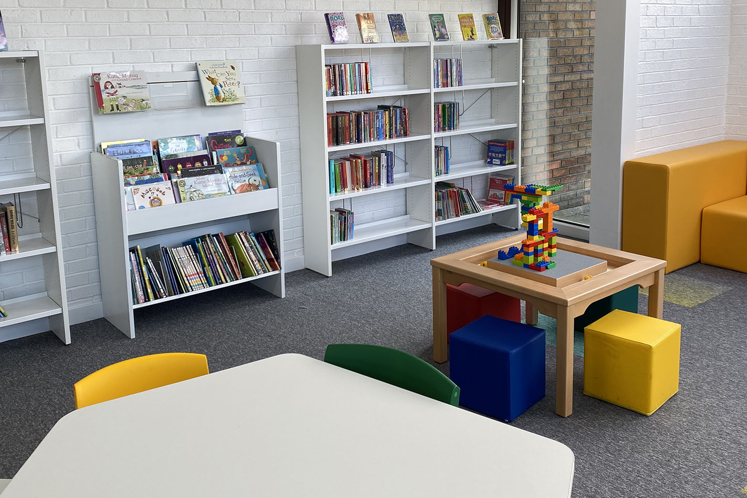 Set back panel either at a low or high position. When mounted in the high position, the slot in the back panel can accommodate display and sign holders.