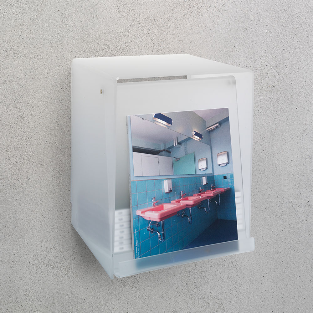 Acrylic magazine boxes for displaying and storing magazines.