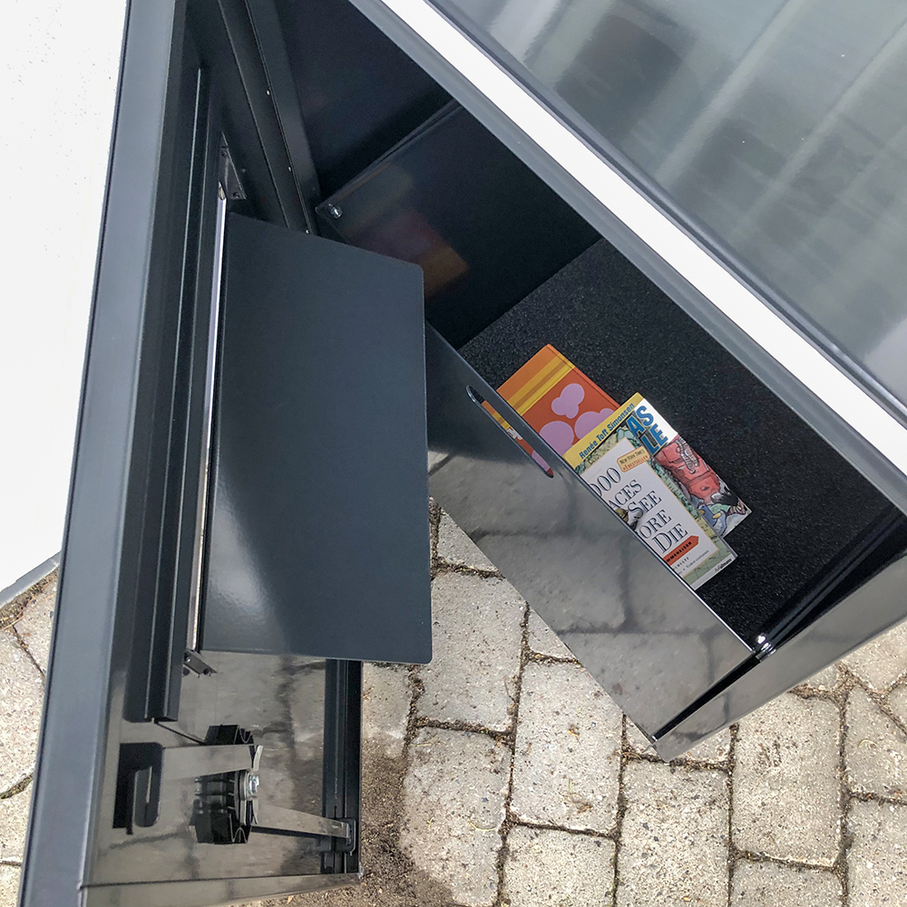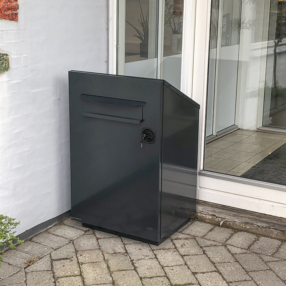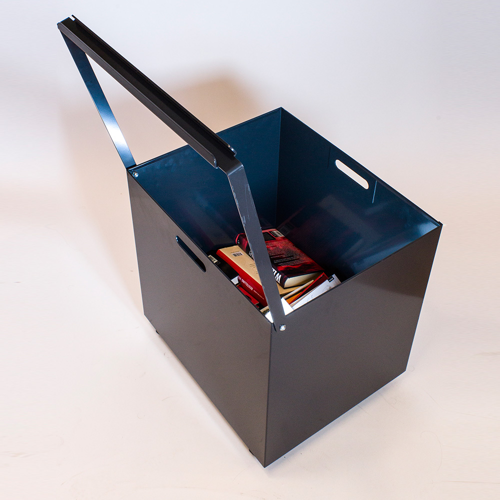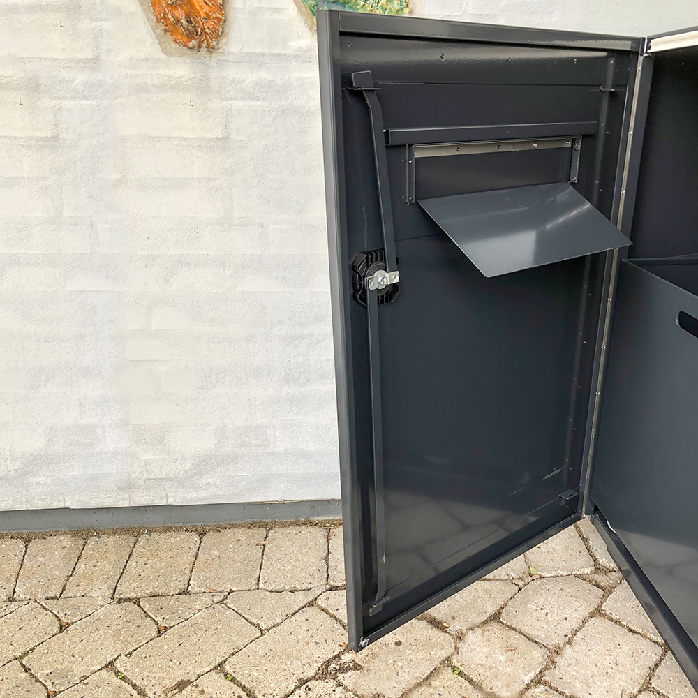 Robust, lockable return cabinet in metal for outdoor use. Suitable for libraries with limited opening hours.