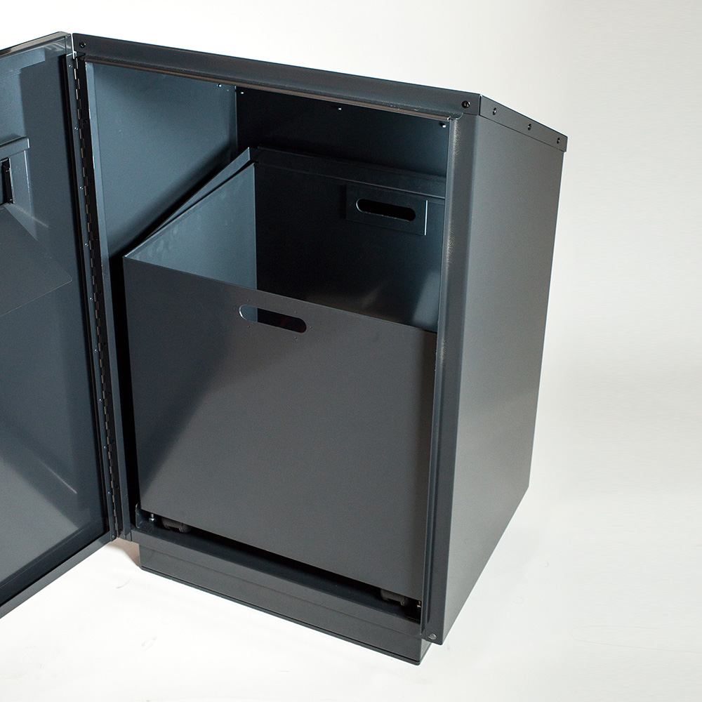 Security: The cabinet has space for concrete blocks in the bottom to add extra weight. Or you can bolt the cabinet to the ground to protect from theft.