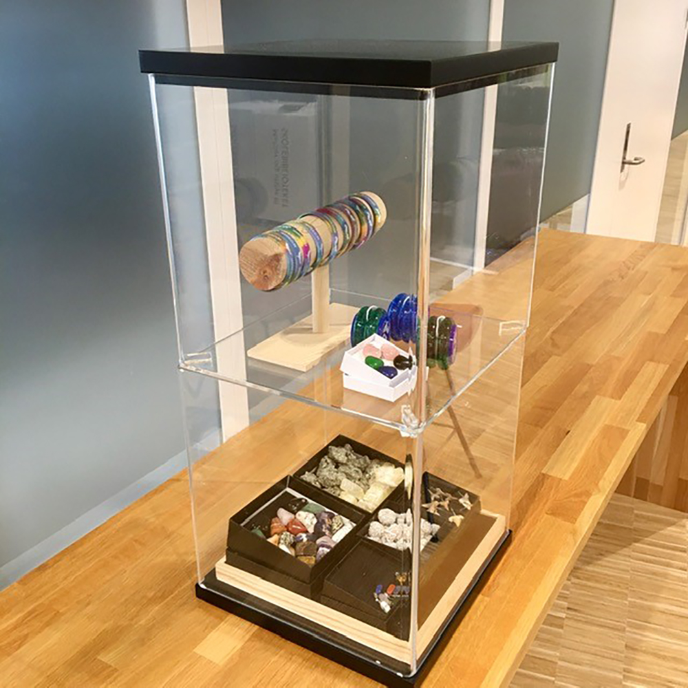 Display with 2 Cubes includes 1 top and bottom set + 2 Cube modules + either 1 display holder OR 1 partition.