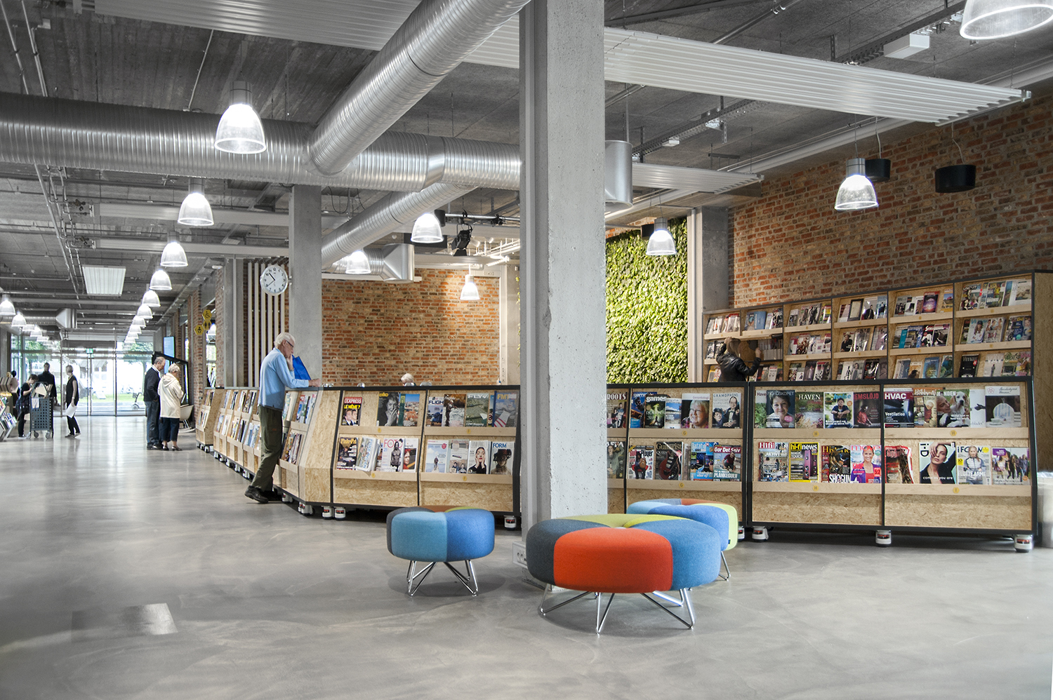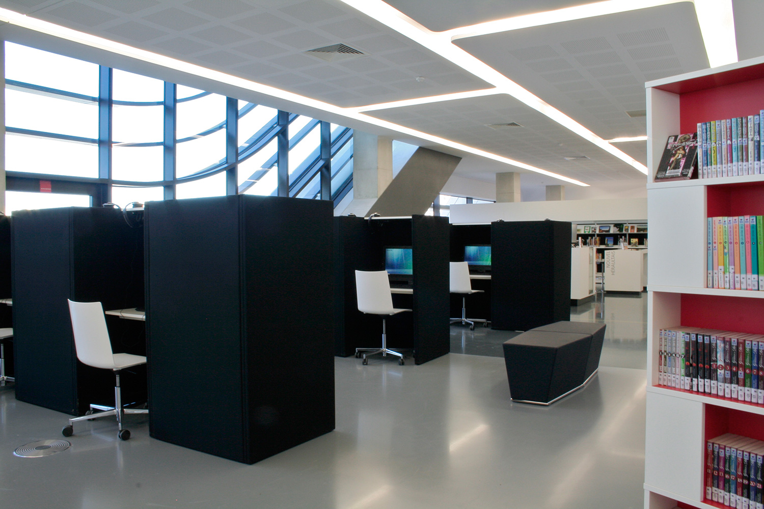 With 15,000 square feet of concrete, glass, wood and steel, the culture house contains among other things halls, a theatre, a cinema and a library. According to the county, the library, which takes up