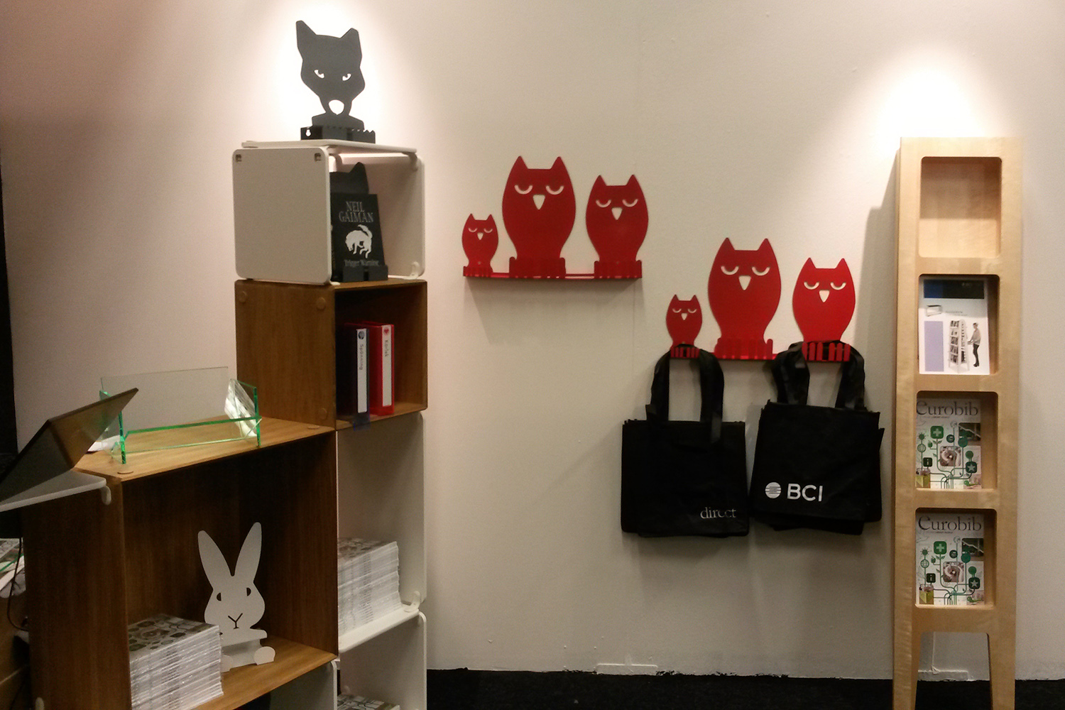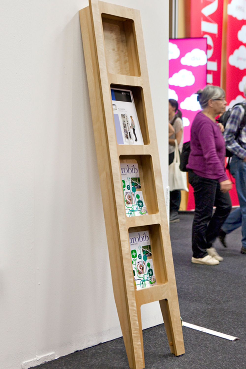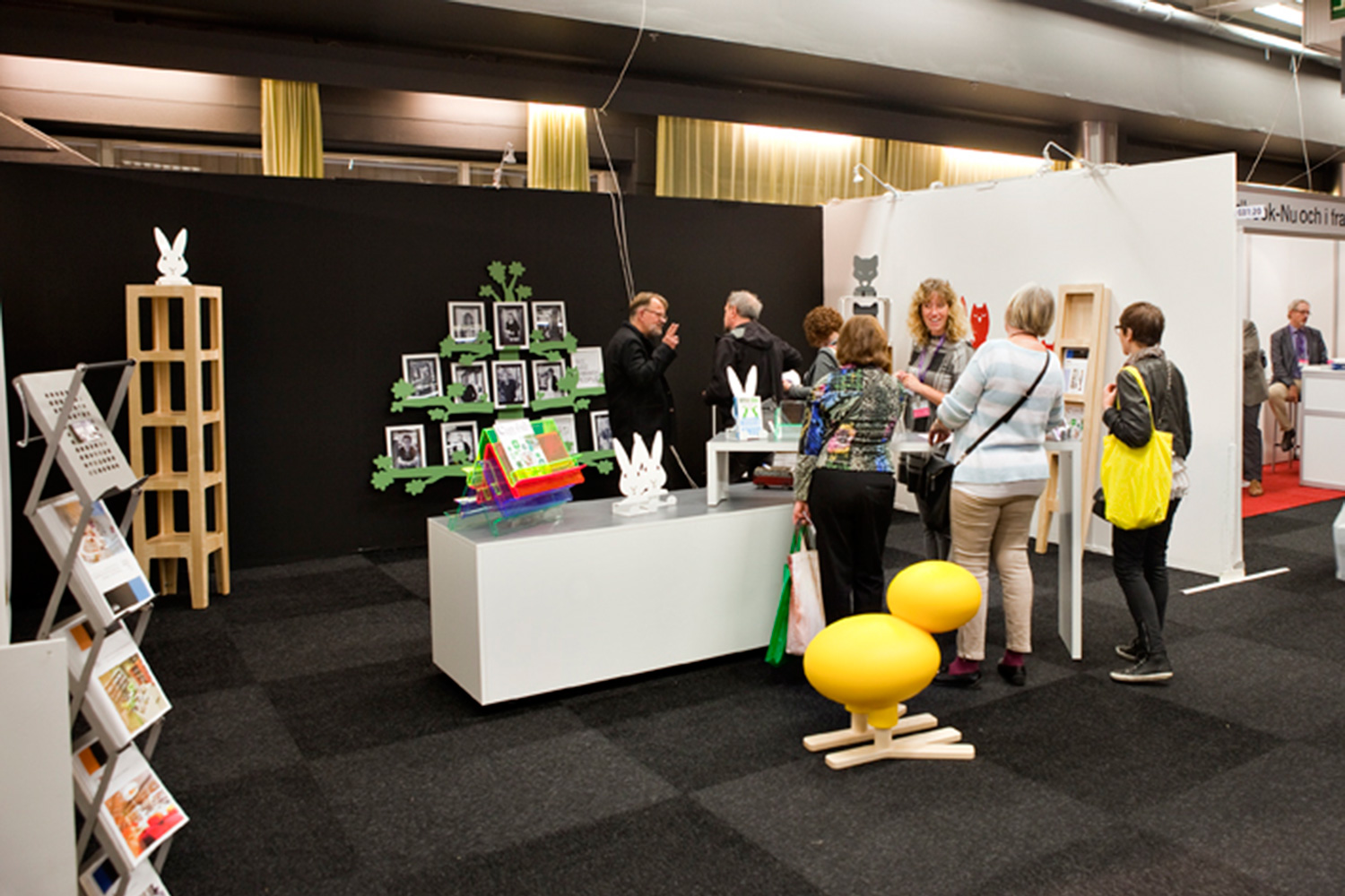 Our theme at this year's fair was the signs of nature with both wolves, rabbits, happy birds and trees, all highlighting media in various forms in the best way possible. Several of the shown news as display towers in birch veneer for stand-alone placement or placed against a wall functioned both as exhibition space and front display.