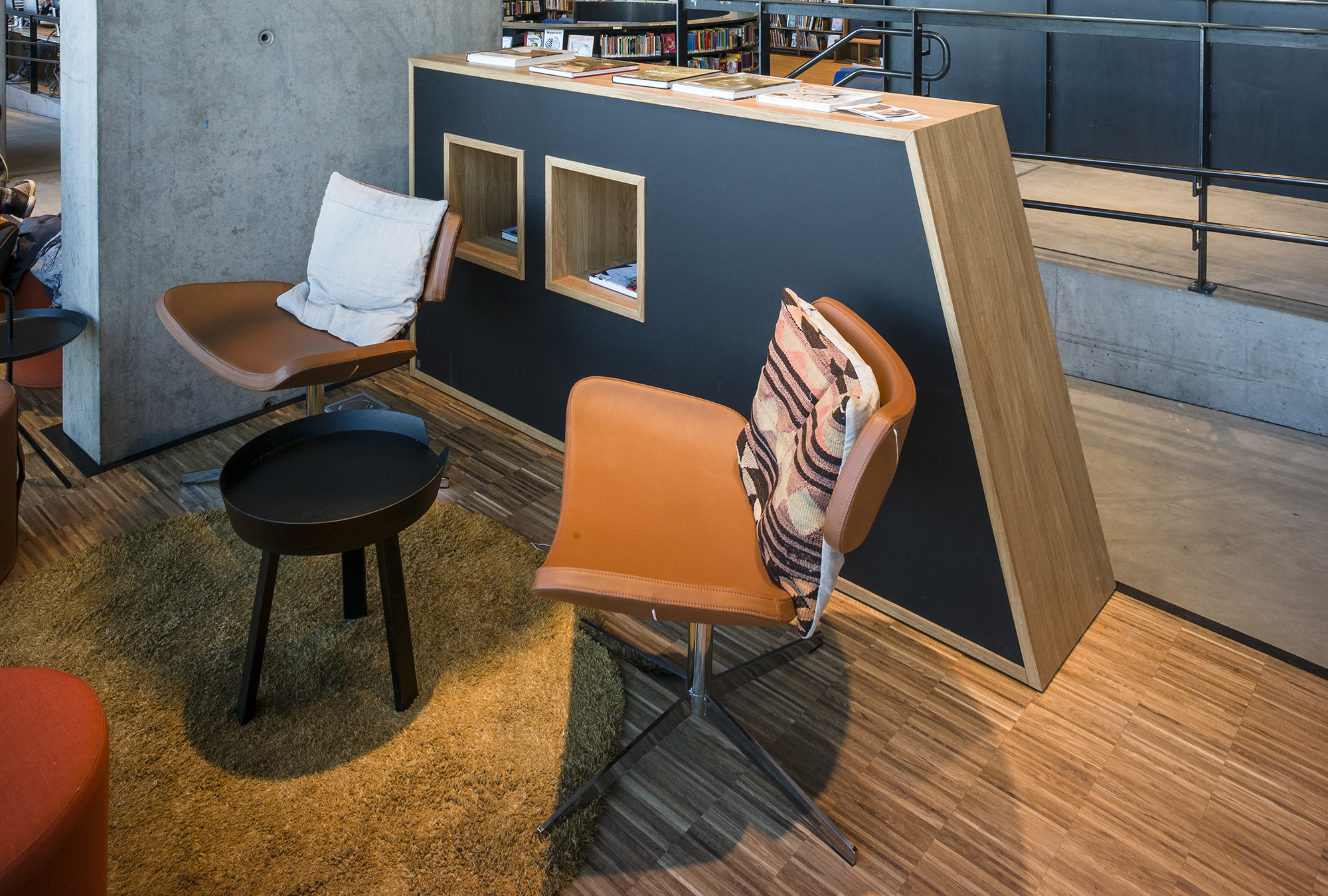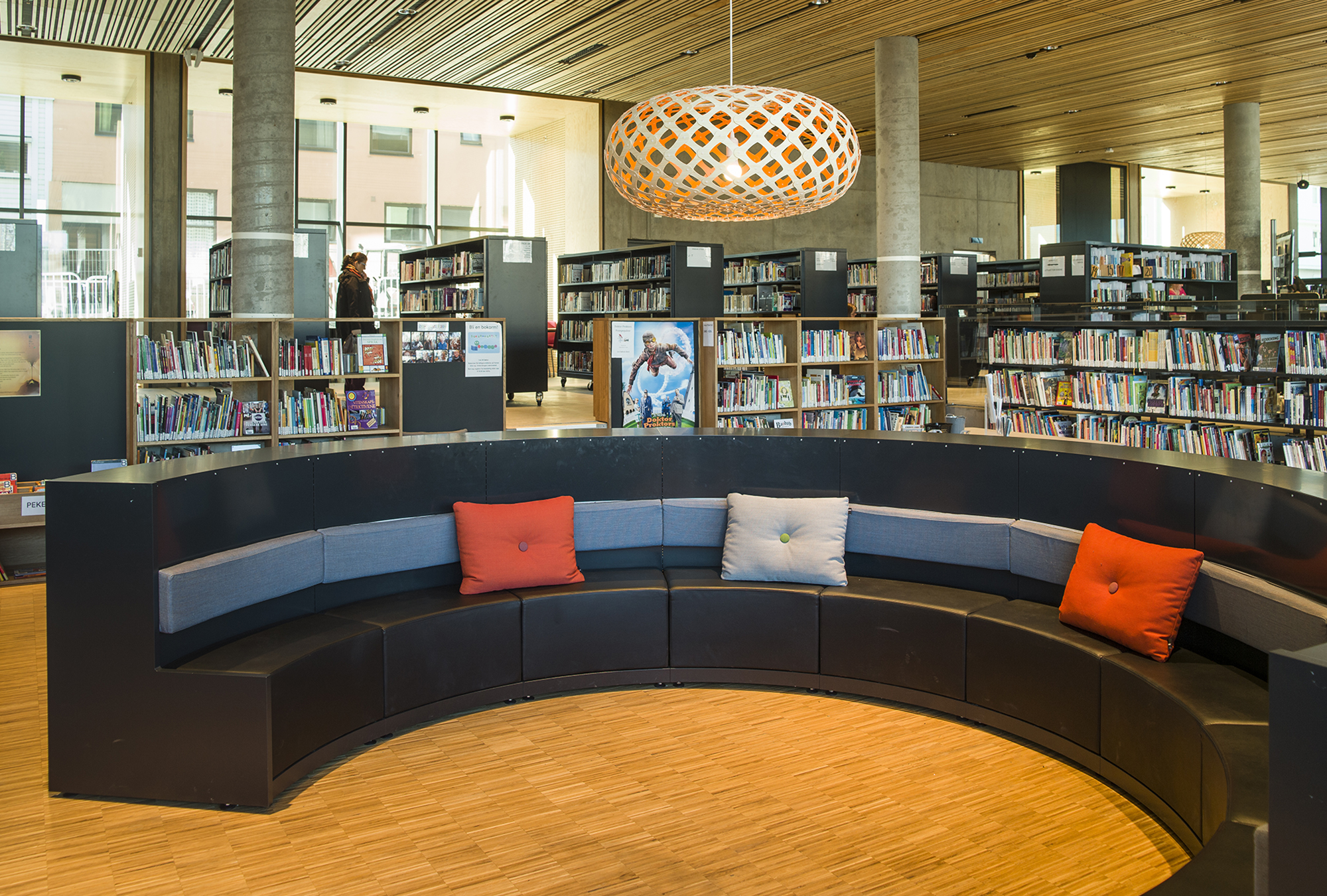 With 15,000 square feet of concrete, glass, wood and steel, the culture house contains among other things halls, a theatre, a cinema and a library. According to the county, the library, which takes up 3000 square feet, is going to be the most important cultural meeting place and the service base for the whole culture house. The interior of the culture house is mainly composed of the Classic 60/30 Steel Shelving Systems, Round Steel Shelving and displays, such as Ordrup and Show It.