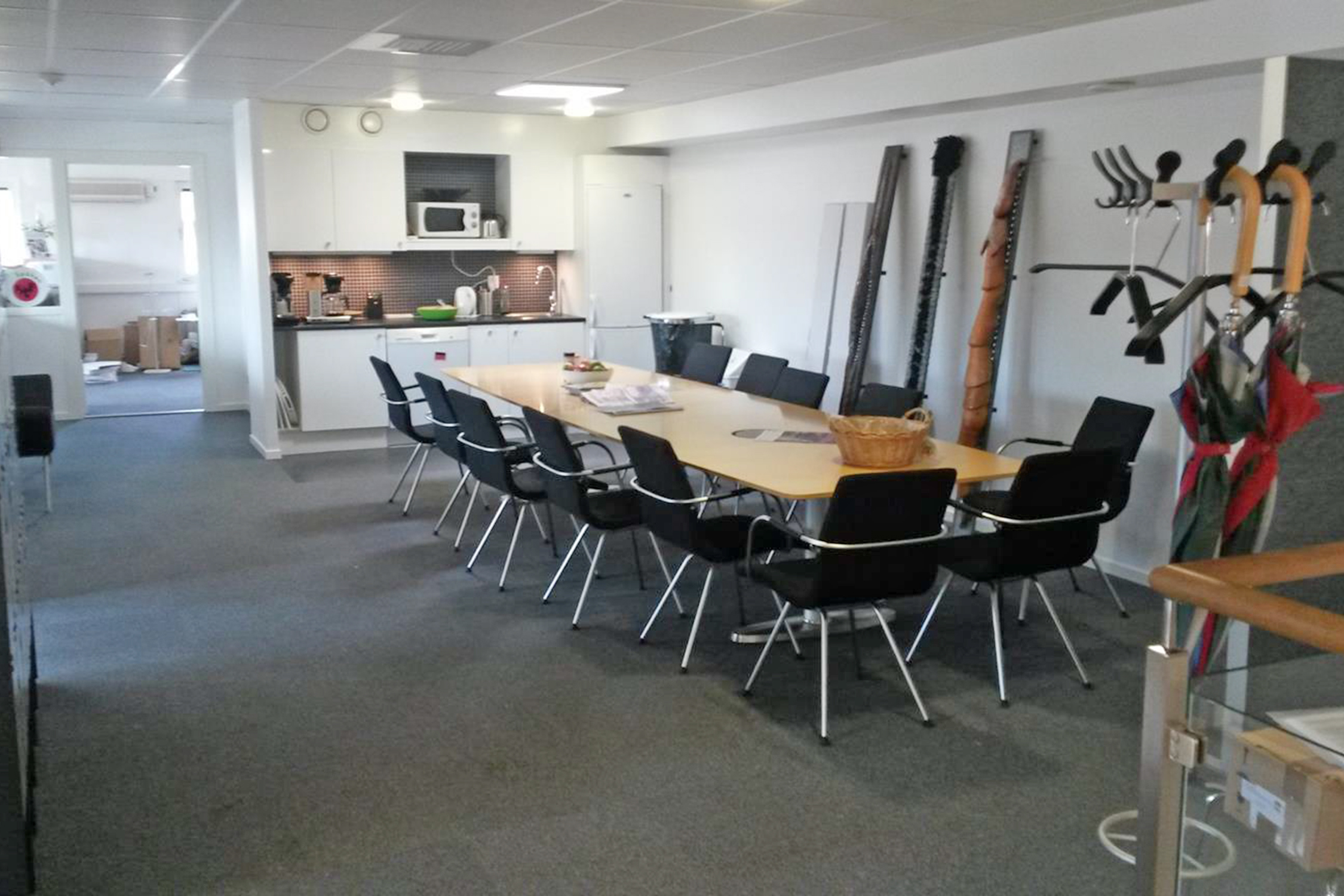 There is about 250 m2 housing a large canteen, three rooms for 10 staff members and a small meeting room. The Swedish staff is very happy about the excellent acoustic qualities created by the ceiling material and carpets.