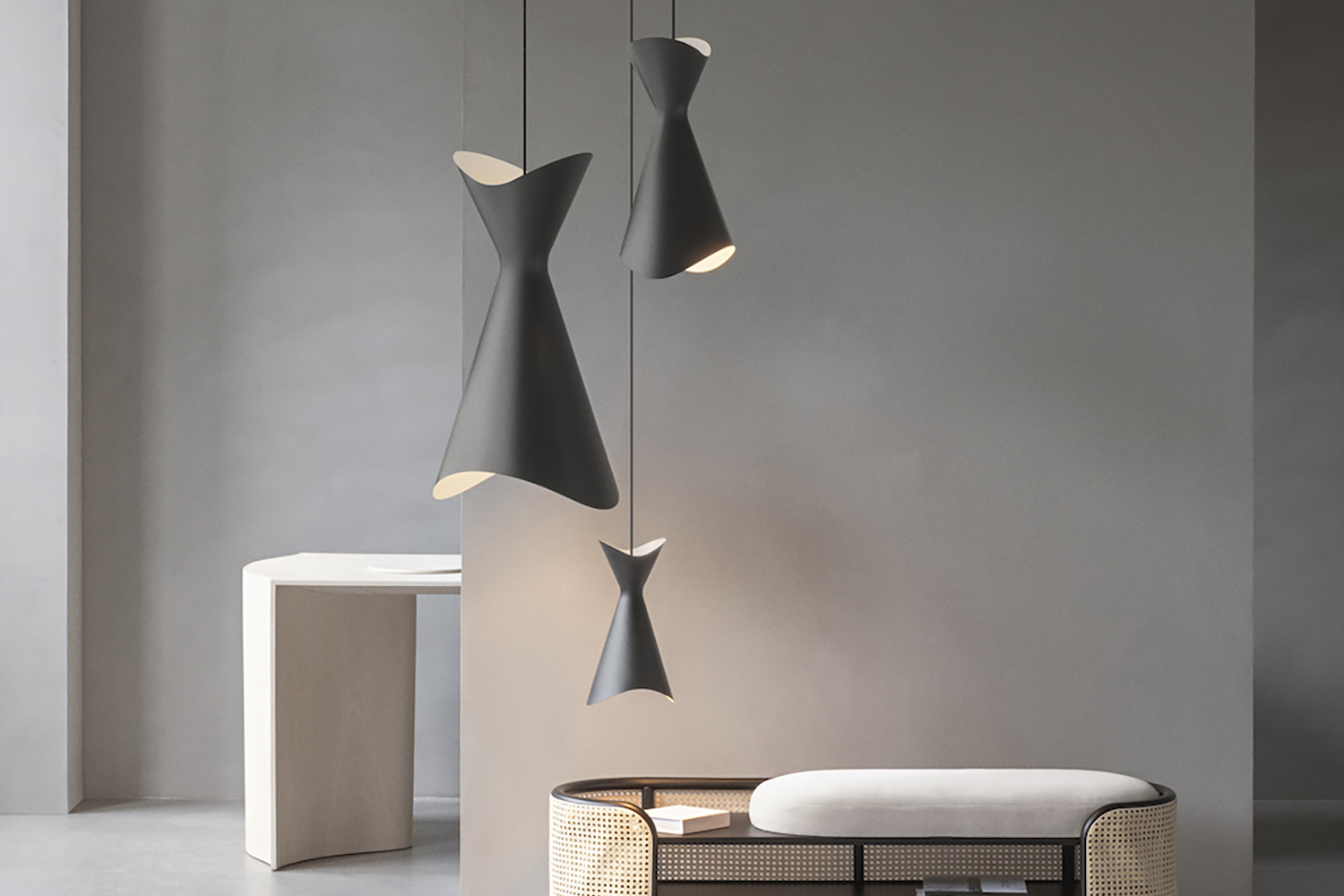 The organic body with its asymmetric drapes and open-top design ensures diffused upward lighting while the downlight is even and direct, which makes for a functional as well as ambient lighting experience.
