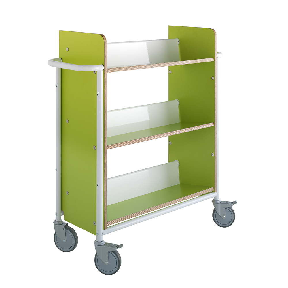 This book trolley can be used as a mini shelving system that can be moved around in the library where needed.