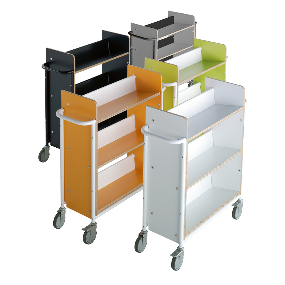 This book trolley can be used as a mini shelving system that can be moved around in the library where needed.
