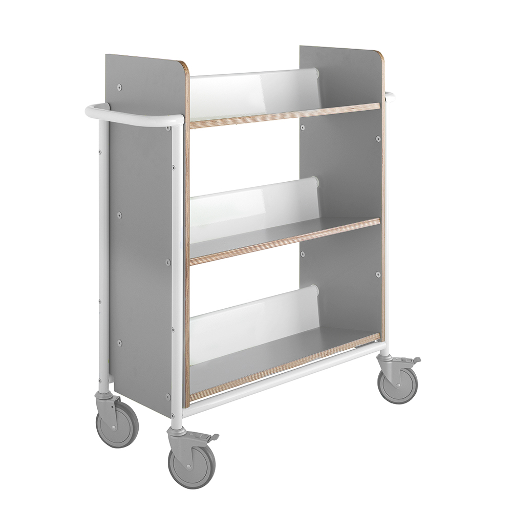 The trolley is spaceous and has a generous shelf clearance for all sizes of books and binders.