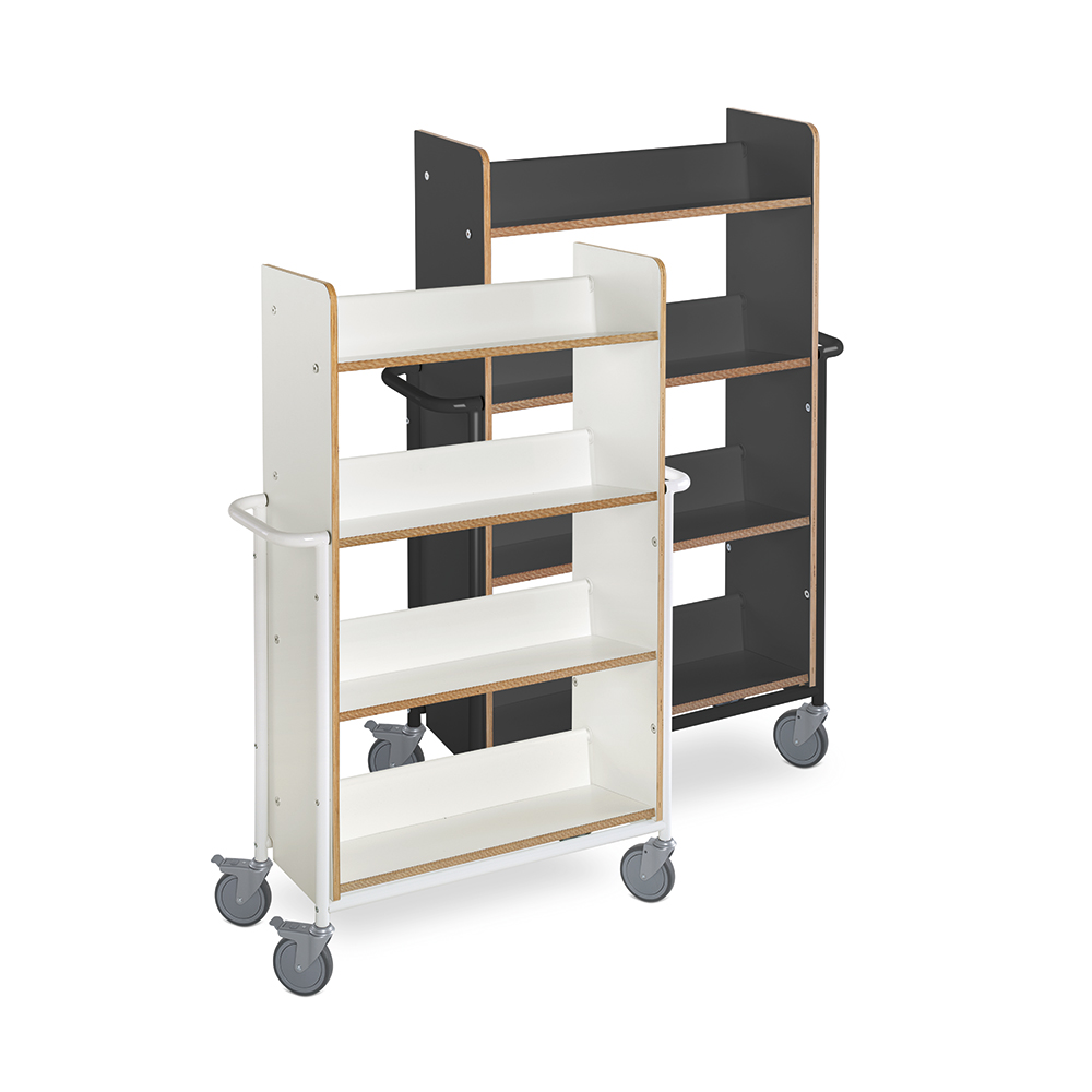 The trolley is spaceous and has a generous shelf clearance for all sizes of books and binders.