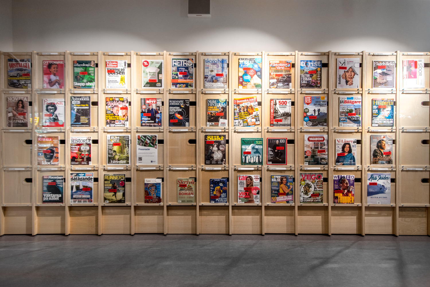 Discover new titles or find the magazine you are looking for right away. The transparent acrylic display on the cabinet doors provides both guidance and inspiration. Behind the doors you will find back issues which have been easily and logically stored. The cabinets also have room for A4 vertical storage boxes.