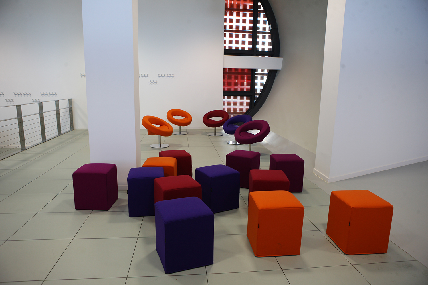 Pouf has the shape of a dice and is easy to place in any place at the library.