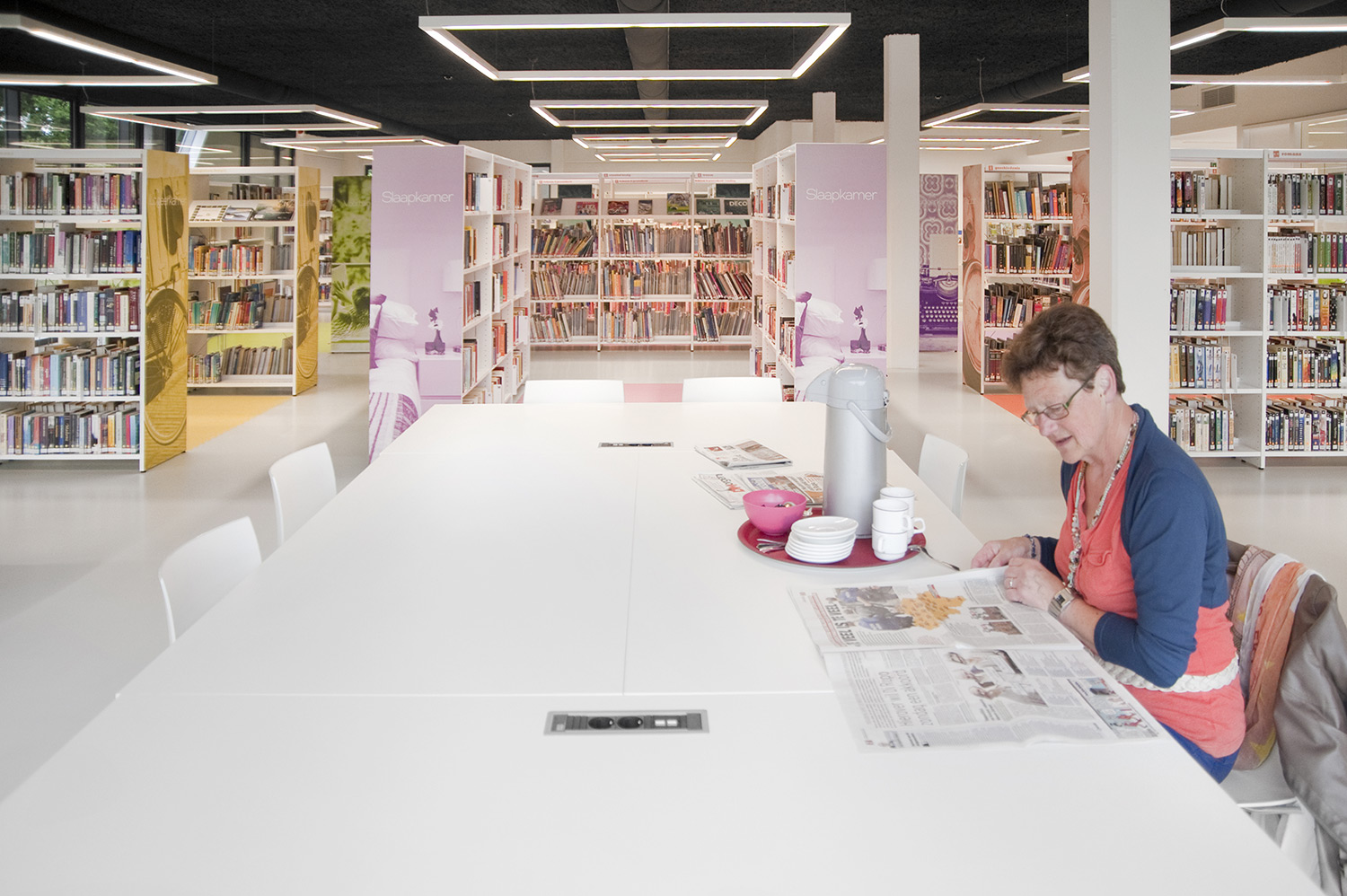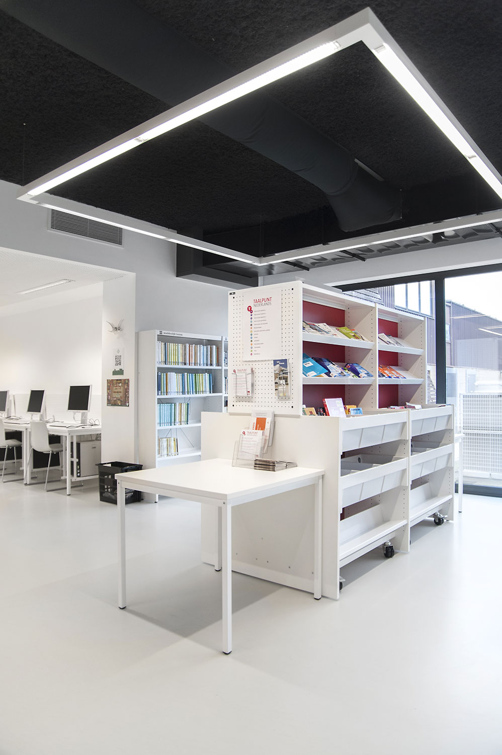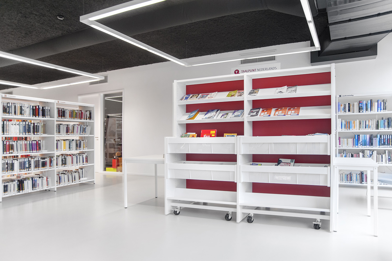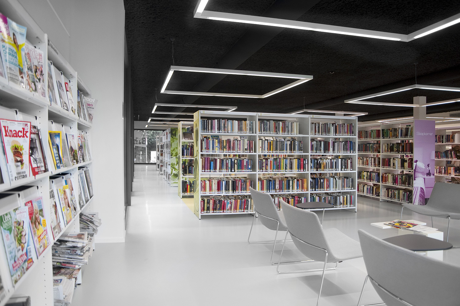 A clear interior design concept was established for the new library of Affligem by the design bureau Pointiv. The concept was to create the library as a reflection of your daily home environment. The outcome shows that through the quality of our products and our ability to offer designed solutions we can meet architectural vision.