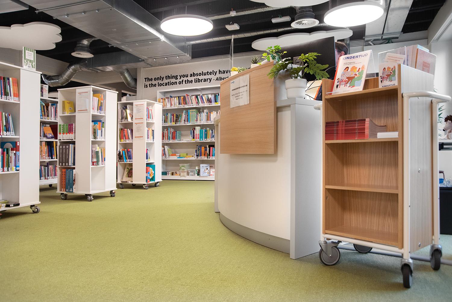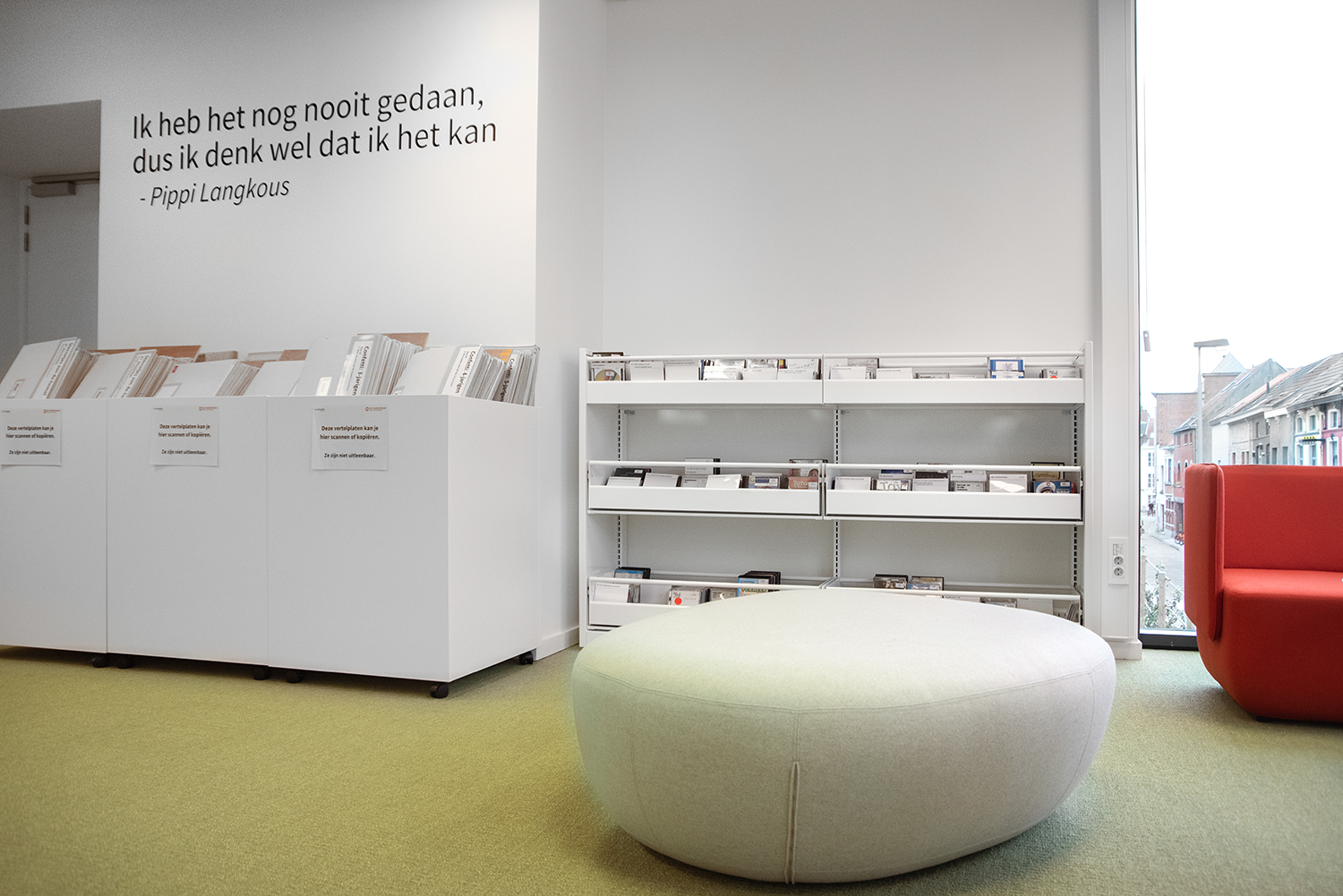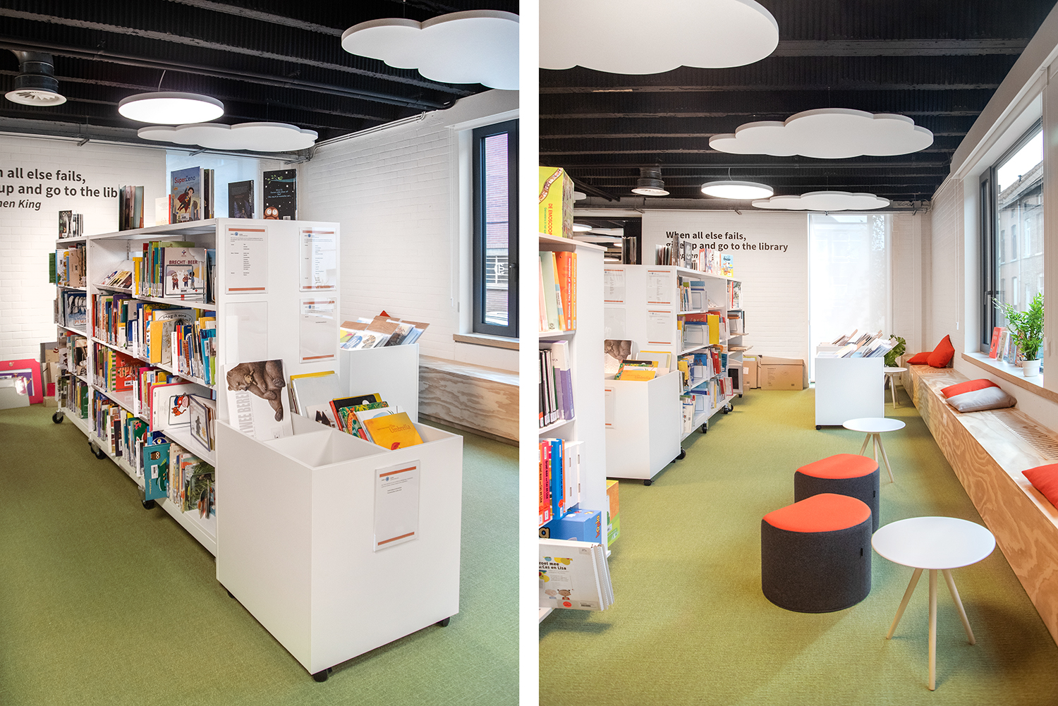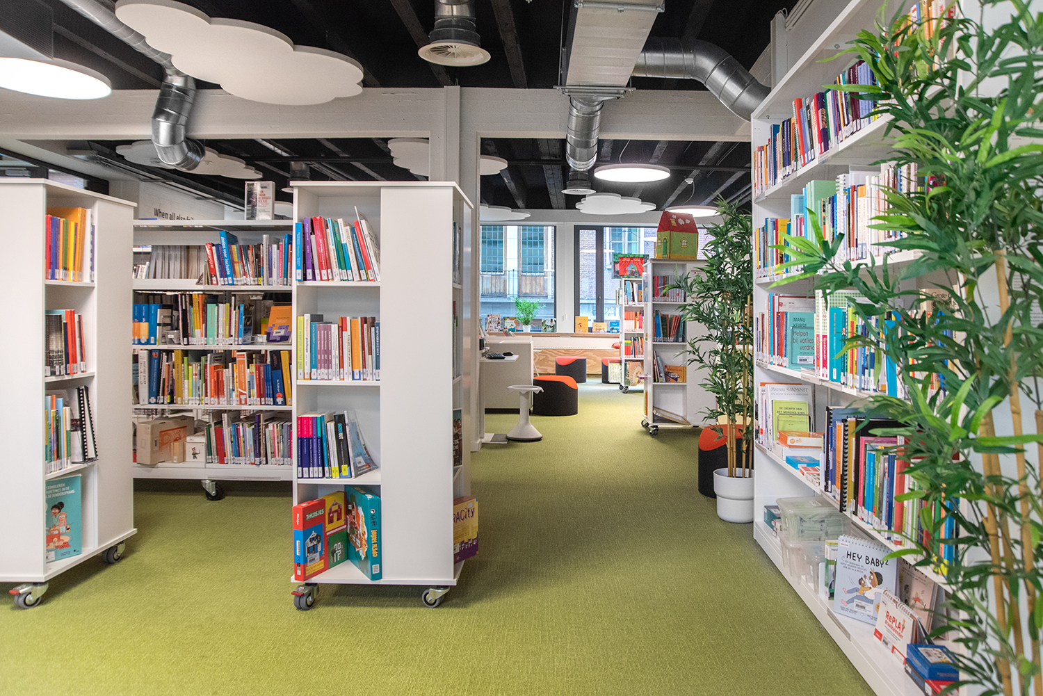 The library has become a place for visitors to work, relax and meet. Employee Lore Letermere says: “Students, employees, and visitors unanimously agree that the renovated media library has become a pleasant and inspiring room. People are very positive about the quiet, sober environment that also radiates warmth and is comfortably furnished. The media library looks light, fresh, and a bit playful. Completely tailored to the Preschool and Early Childhood Education for whom the media library is mainly intended.”
