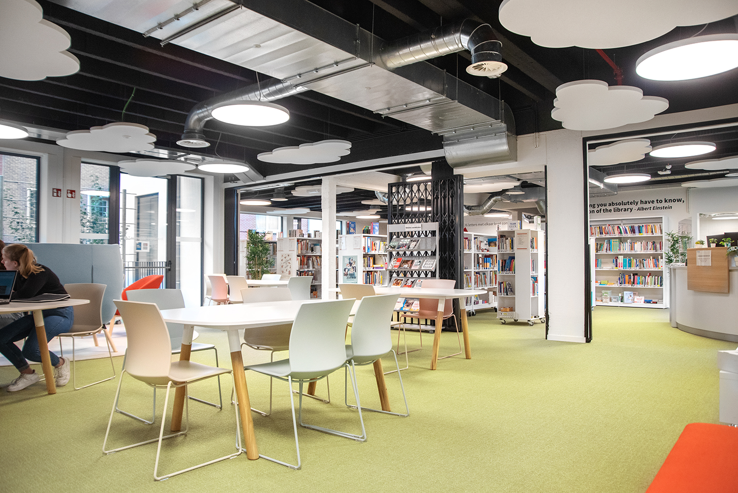 Like the rest of the campus, the media library of Artevelde University of Applied Sciences in Ghent was renovated in 2021. The existing library was completely renovated, enlarged, and transformed into an inspiring learning environment.