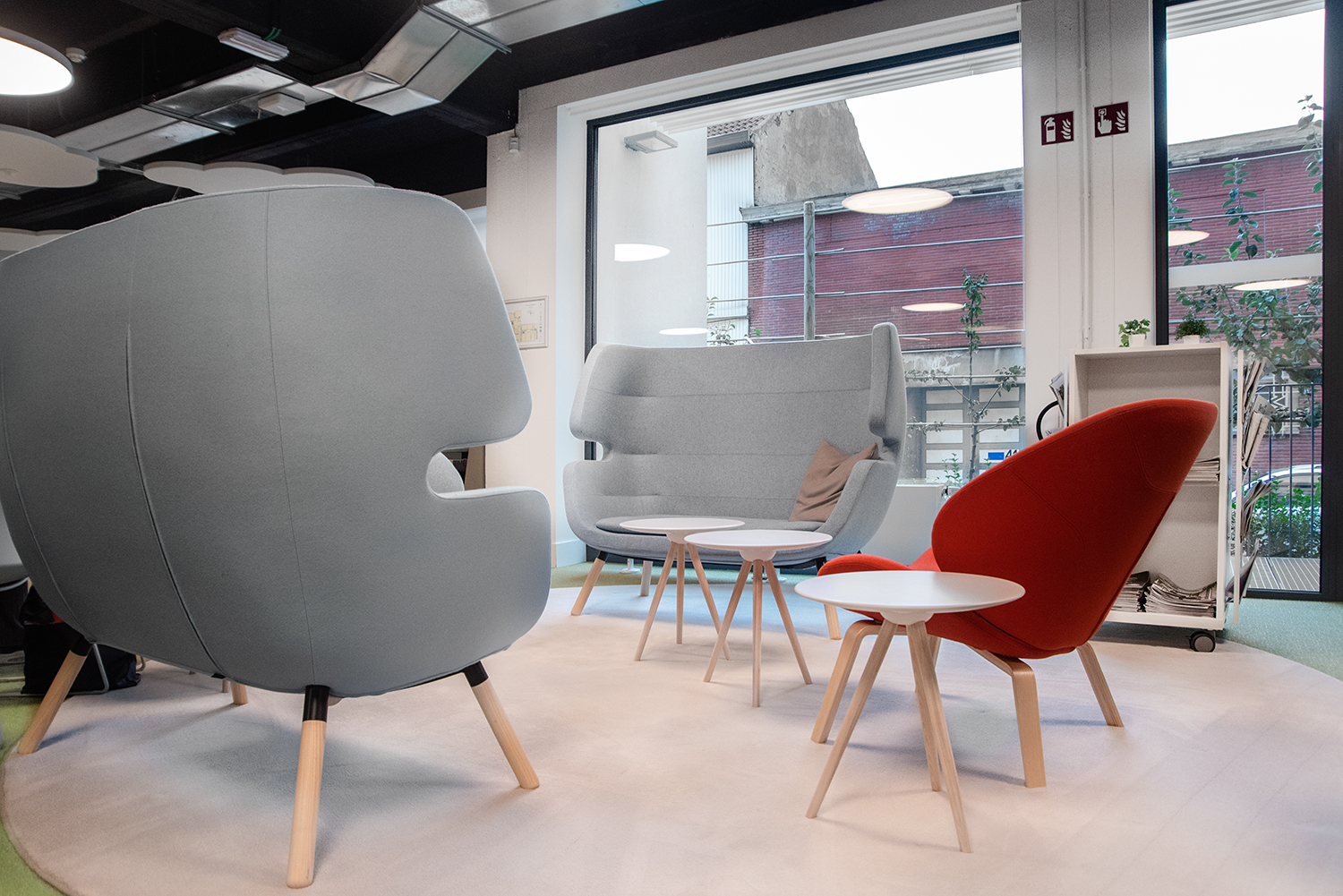 The renovated media library has a warm and inviting interior and offers sufficient space for meetings and longer stays. The shelving systems consist of low, white shelves that make the library light and manageable. At the same time, the mobile shelving allows for a replaceable interior design that makes it easy to change the placements of the books and general appearance.