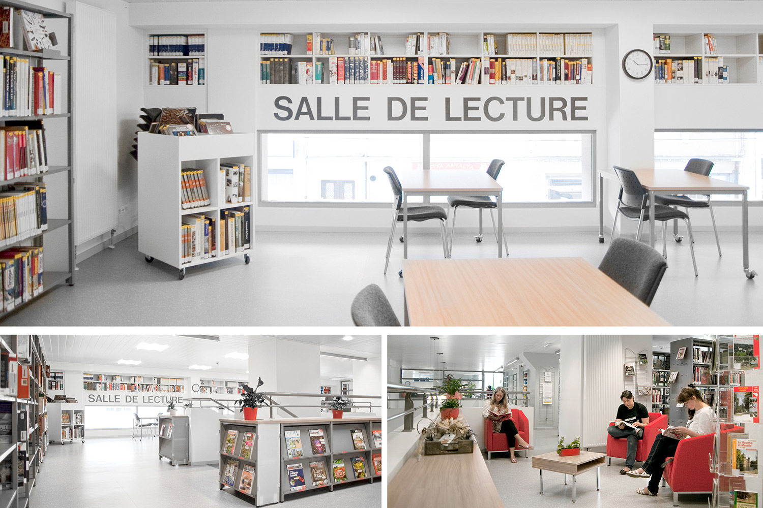 After years of being located in a basement, the library Hubert Juin can now take a new breath in a new two-storey building. The municipality Athus can now offer a library with room for reception, book collection, exhibitions and various activities.